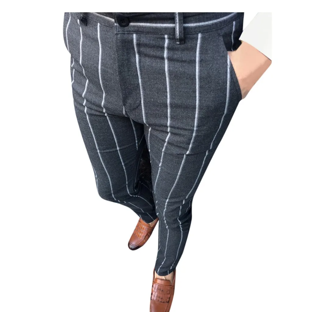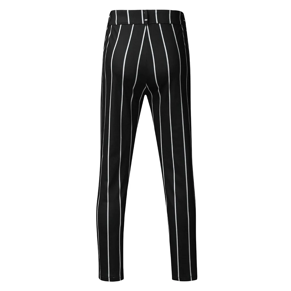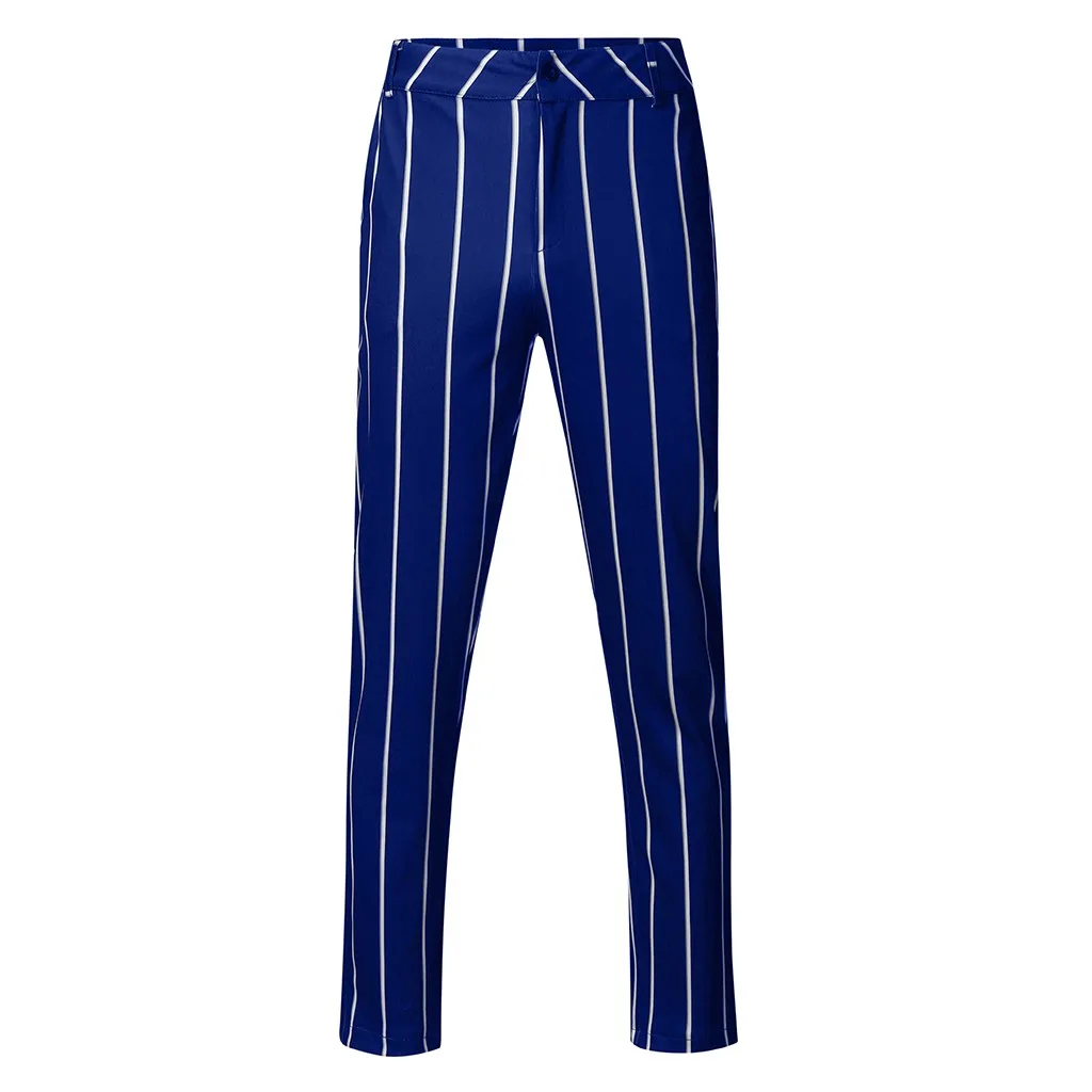 Модные мужские повседневные бизнес облегающая полосатая печать молния длинные брюки