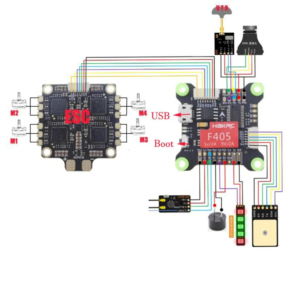 100% оригинал и абсолютно новый.Гибкая кабельная связь между Управлением полетом и ESC уменьшает воздействие автоматического управления полетом.Существует много интегрированных функций управления полетом, и компоненты очень плотные. При установке не используйте инструменты (например, игольчатые плоскогубцы или рукава) для завинчивания гайки, которая легко царапает оборудование башни и вызывает ненужные потери. Правильный способ-затянуть гайку пальцами, а отвертка может быстро затянуть винт снизу. (Не забывайте, чтобы не было слишком туго, чтобы не повредить PCB)Не устанавливайте пропеллер при установке и отладке управления полетом. Старайтесь не летать в помещении, чтобы избежать несчастных случаев. Перед установкой испытания пропеллера проверьте снова, что двигатель поворачивается и пропеллер находится в правильном направлении. Совет Безопасности: Не летайте рядом с толпой.Не используйте неоригинальные алюминиевые или нейлоновые колонны, чтобы избежать повреждения оборудования для управления полетом. Официальный стандарт-нейлоновая колонна для летучей башни индивидуального размера.Перед включением питания, пожалуйста, проверьте правильность установки Между башнями (она должна быть согласована с контактами или кабелями), проверьте правильность положительных и отрицательных полюсов сварки и проверьте, есть ли винты двигателя против статора двигателя, чтобы избежать короткого замыкания.Проверьте, есть ли какой-либо припой на электронных частях башни, что может вызвать короткое замыкание. Контроллер полета HAKRC F405: Монтажное отверстие: 30,5x30,5 мм & phi; 4 ммCPU: STM32F405RGT6Гироскоп: MPU6000Входное напряжение: 3-9 S LipoУстройство хранения: 16 МбПоддержка прошивки BF (прошивка HAKRC F405)UART последовательные порты: 550A 4в1 3-6 S ESC: