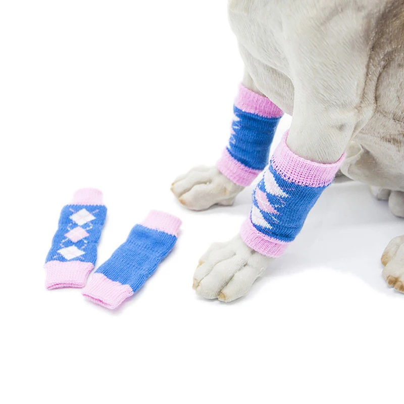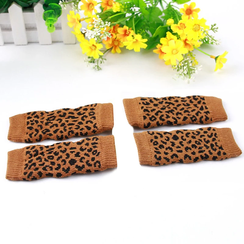 * Описание товара: 4 шт./компл.; зимние носки для собак; гетры с леопардовым рисунком зебры