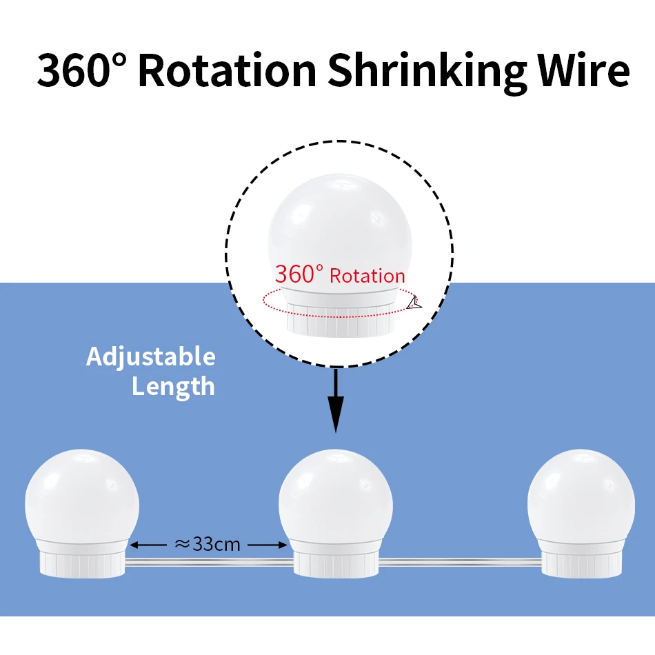 *Предусмотрены двухсторонние ленты и присоски, лампочки могут быть непосредственно и быстро наклеены на зеркала с лентами или присосками.