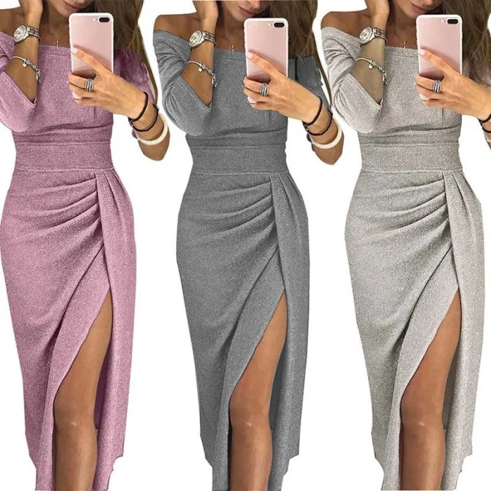 1 шт., женское платье, вырез лодочкой, высокая талия, сексуальный, тонкий, сплошной цвет, для вечеринки, JS26