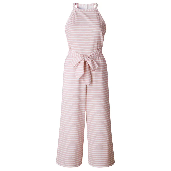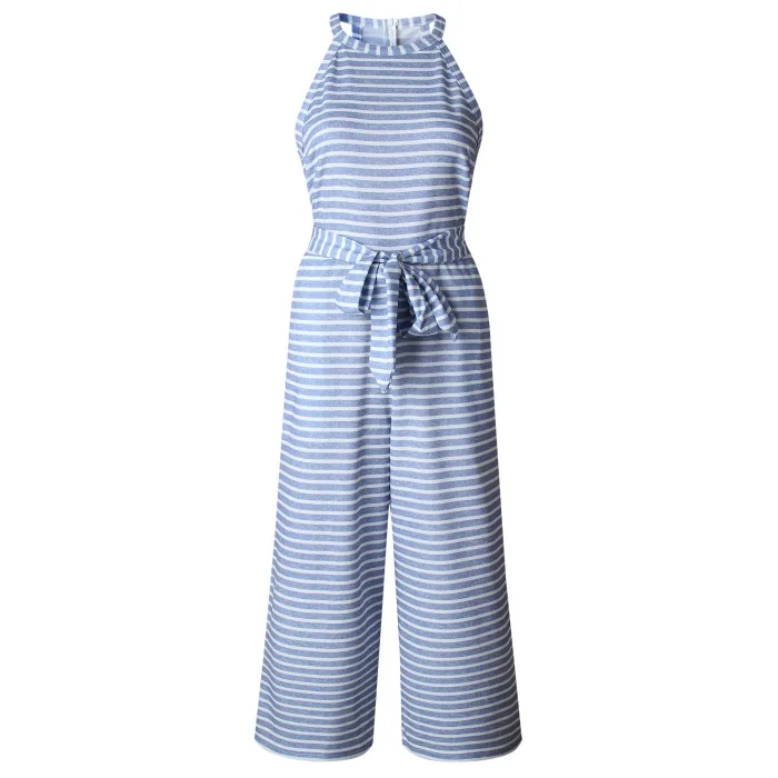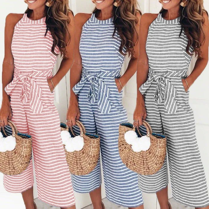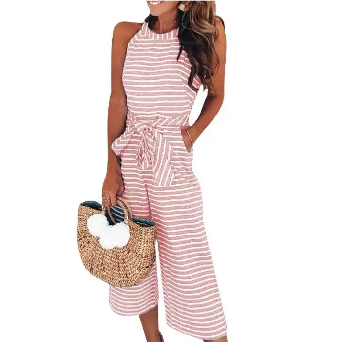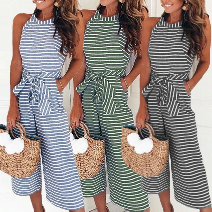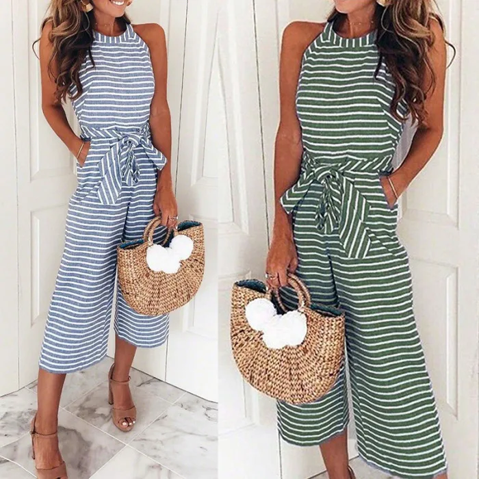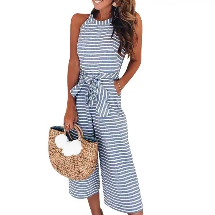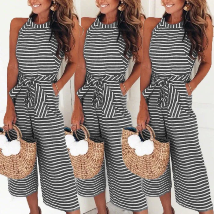 Женский комбинезон без рукавов в полоску с круглым вырезом, облегающий повседневный летний комбинезон JS26