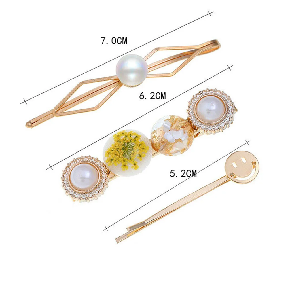 Тип: зажим для волос Материал: сплав, хрусталь, искусственный жемчуг, смола Цвет: как на фото Размер: как показано на рисунке Тип узора: геометрический Посылка включает в себя: 1 комплект зажимов для волос (включая 3 заколки для волос, 2 заколки для волос, 1 заколка для волос)