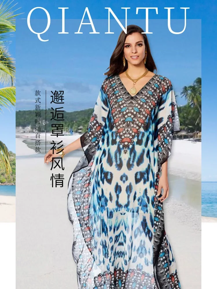 Женский свободный купальник-кафтан, Пляжное длинное Повседневное платье-кафтан