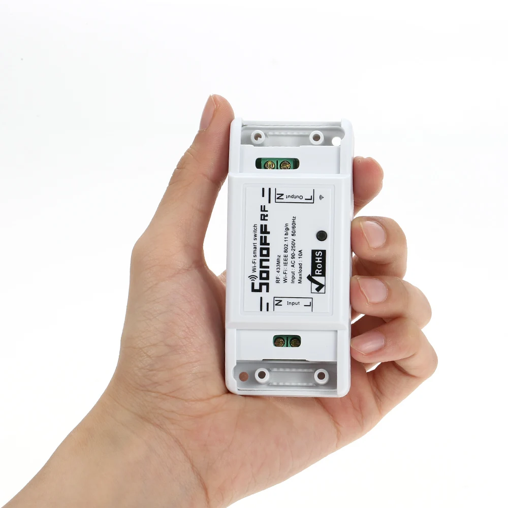 Переключатель Sonoff RF-это версия Sonoff с модулем радиоприемника 433 МГц внутри. Этот беспроводной Радиочастотный переключатель можно использовать вместе с радиочастотным пультом дистанционного управления, что позволяет управлять бытовыми приборами без приложения для телефона. Беспроводной пульт дистанционного управления позволяет пользователям удаленно включать/выключать подключенное устройство различных типов и брендов через приложение EWeLink из любой точки мира. Sonoff-это недорогое и доступное устройство, которое может предоставить вам потрясающий опыт управления умным домом. Он отправляет данные на облачную платформу через Wi-Fi роутер, который позволяет удаленно управлять всеми устройствами с помощью приложения eWeLink на вашем смартфоне. Sonoff делает все ваши бытовые приборы умными, если ваш телефон имеет сеть, вы можете удаленно включить или выключить ваши приборы из любого места в любое время. И установив графики для ваших приборов, вы можете поддерживать беззаботную жизнь.