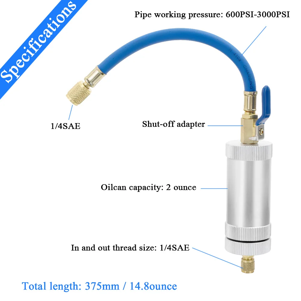 Этот инжектор может быть использован для добавления большинства присадок для кондиционирования воздуха в нашу систему от масла, красителя, остановки утечки и т. д.
