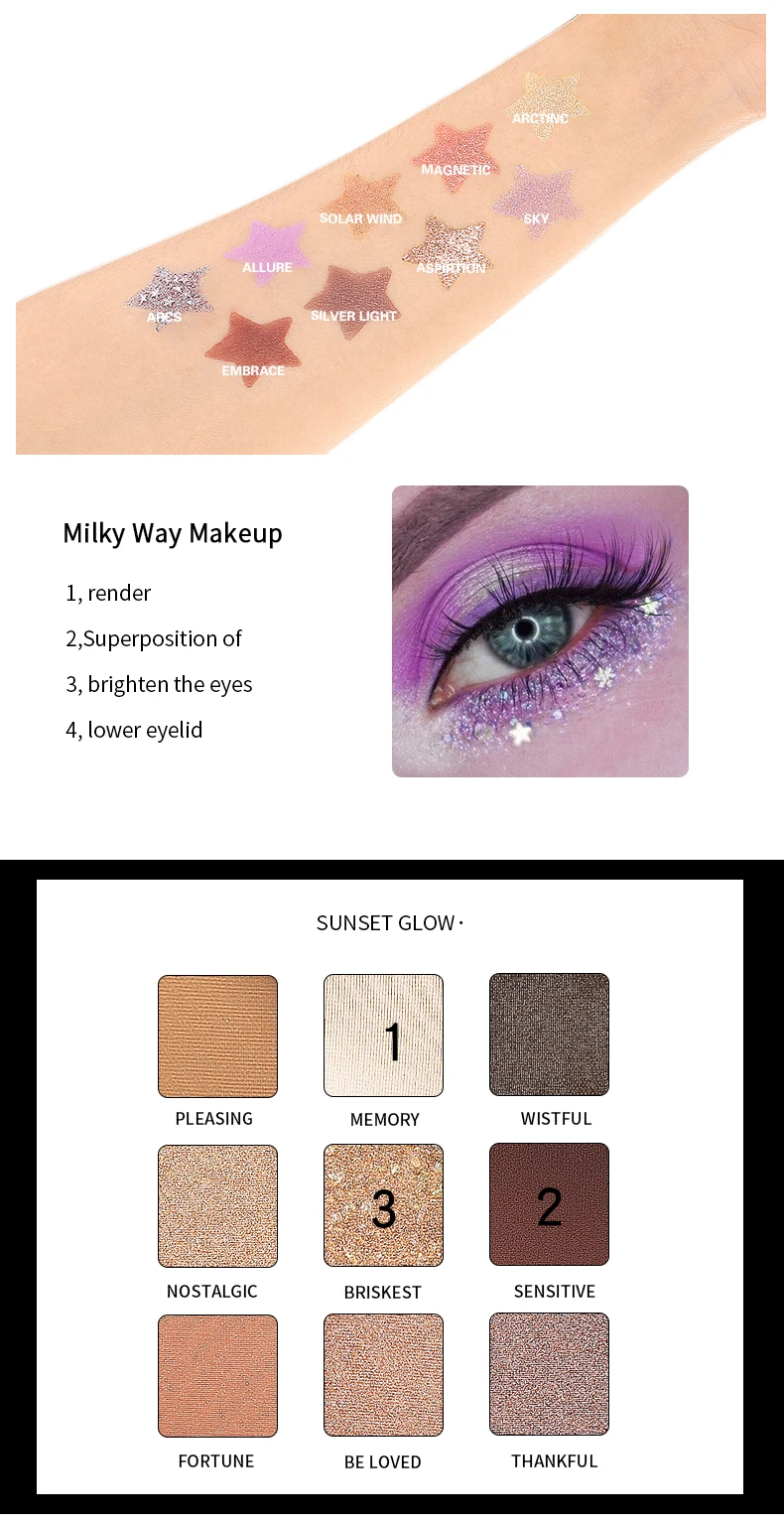 Вампирский стиль 9 цветов блестящие тени для век Палитра теней для век Шиммер и матовый макияж глаз Млечного Пути для палитры теней для век Профессиональная пудра Красота