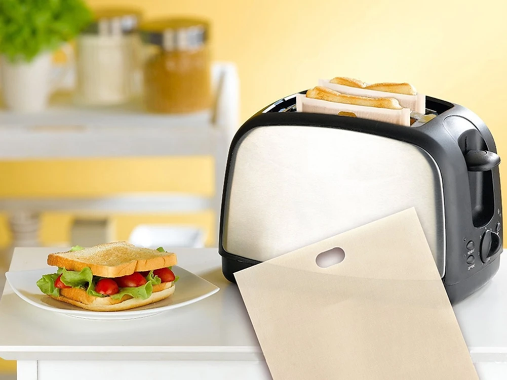 Сэндвичи на гриле, чесночный хлеб, тосты, пиццу, вафли, гамбургеры и т. д. Положите сэндвич, хлеб и другую еду в мешок для тостов и Нагрейте его в духовке. Еда не прилипает к духовке, и она будет равномерно нагреваться и не будет гореть.