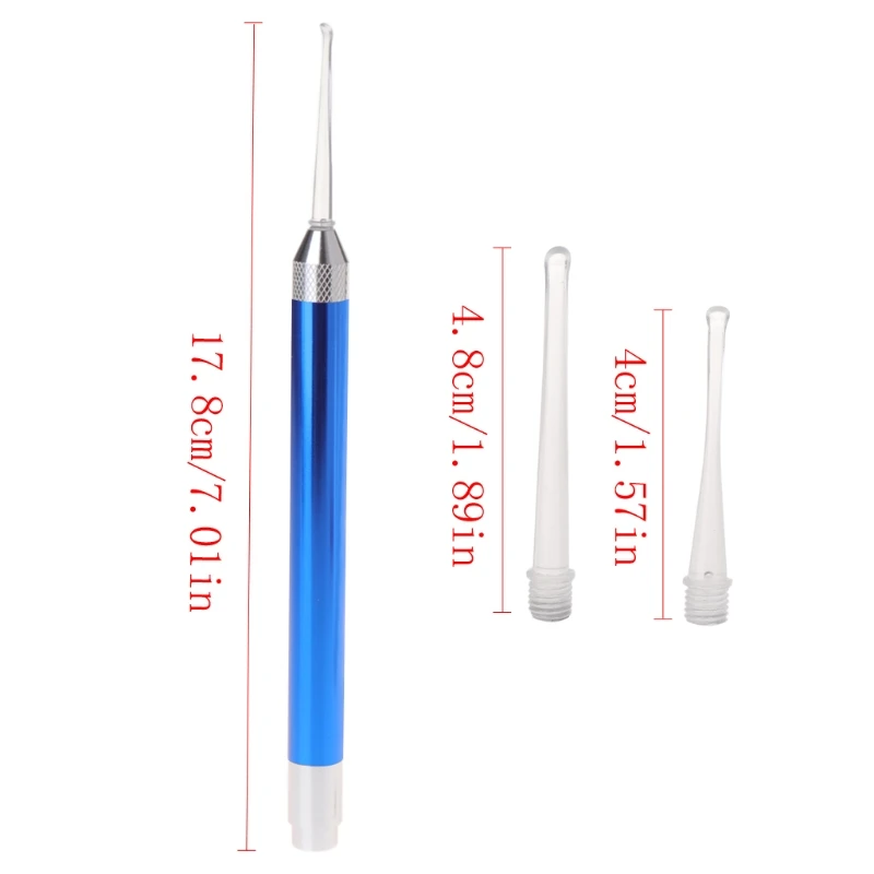 Ушная ложка изготовлена из поликарбоната, корпус изготовлен из алюминия, два нетоксичных материала.