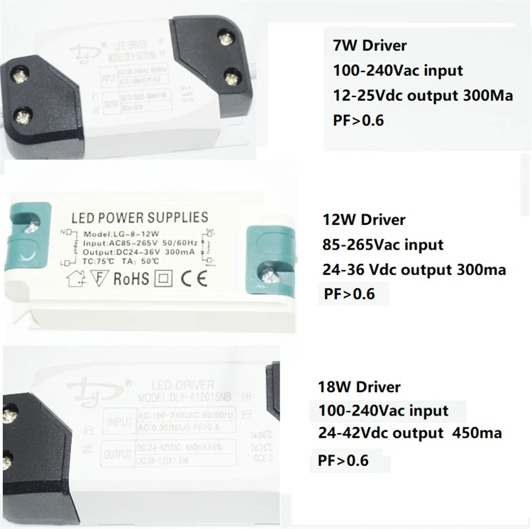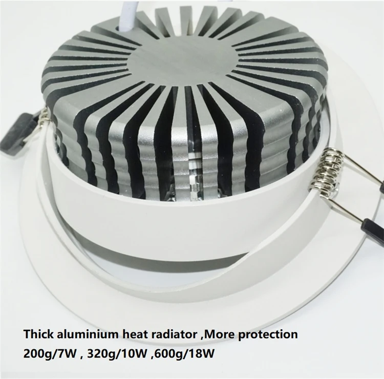 7 Вт D70 * H40mm 12 Вт D108 * H43mm 18W D138 * H50mm С вырезами 70-85 мм/3 дюйма-7 Вт 95-105 мм/4 дюйма-12 Вт 118-133 мм/5 дюймов-18 Вт
