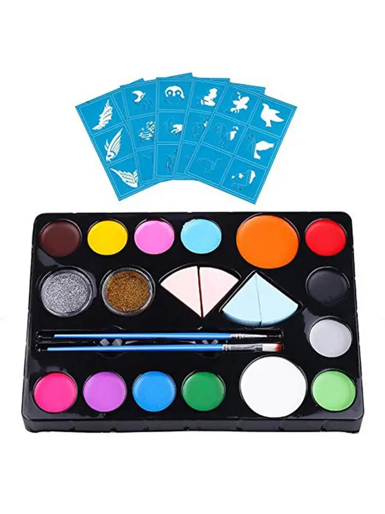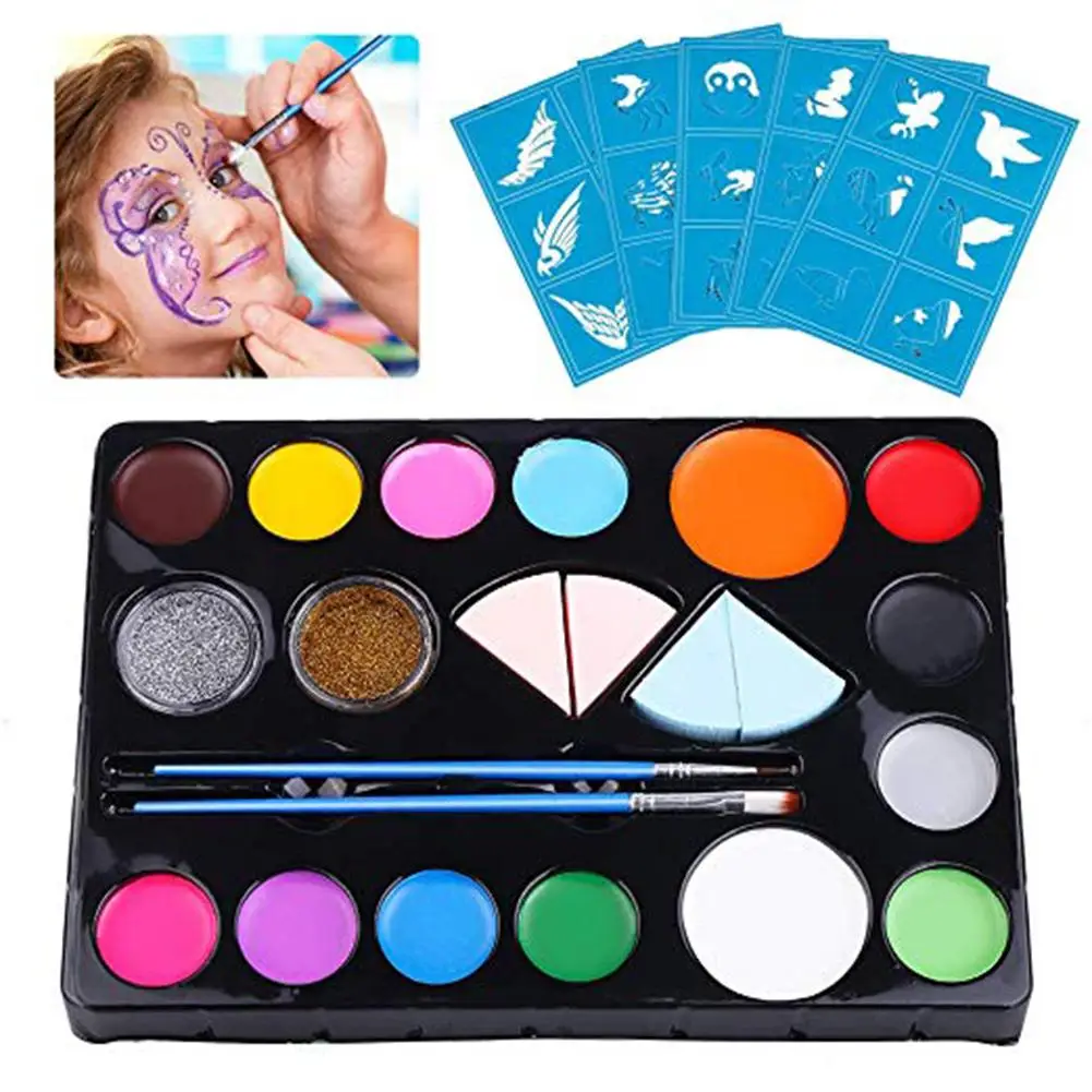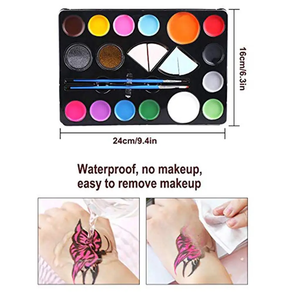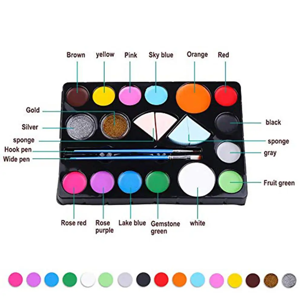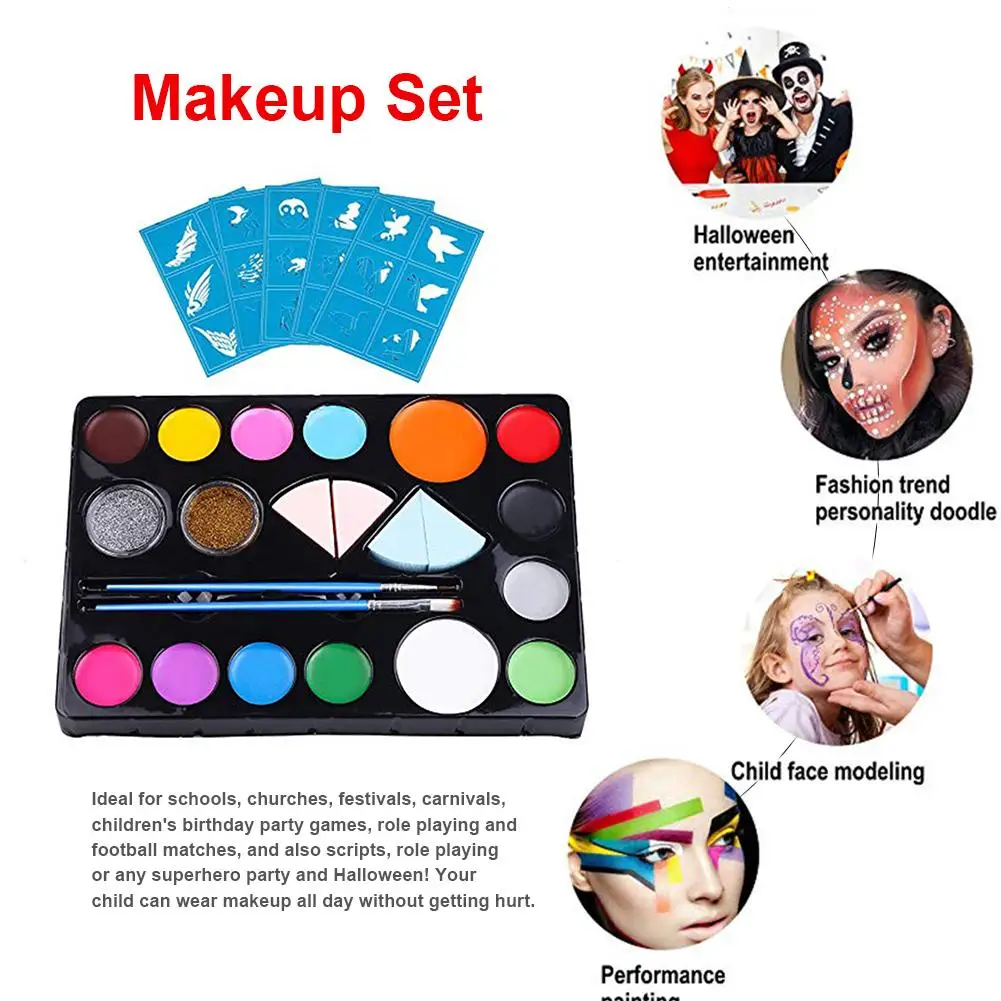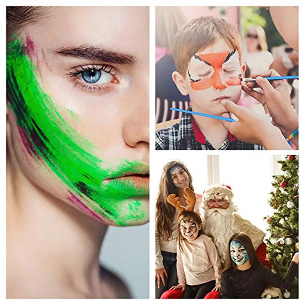 5. Набор для рисования всего лица: набор для макияжа-это хорошее время, чтобы веселиться. Мы предлагаем 14 ярких цветов, 2 вспышки для тела, 2 кисти, 4 губки для макияжа, 30 шаблонов.