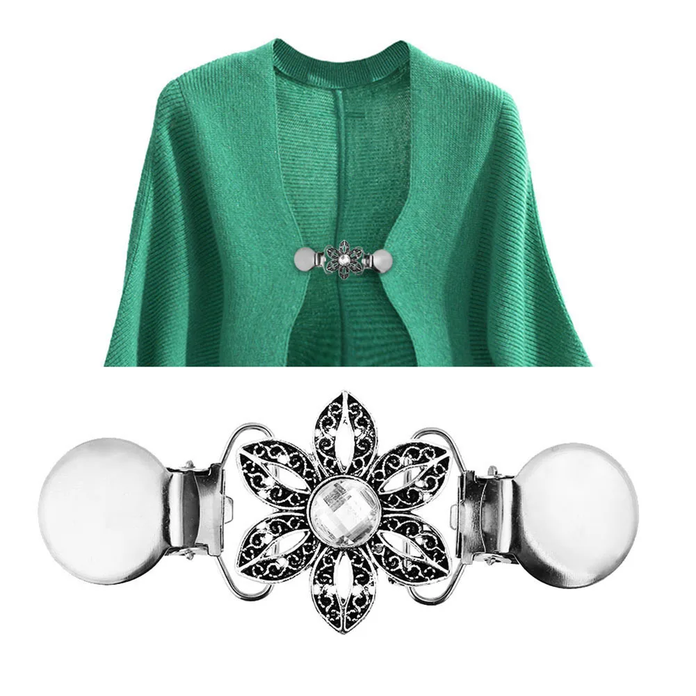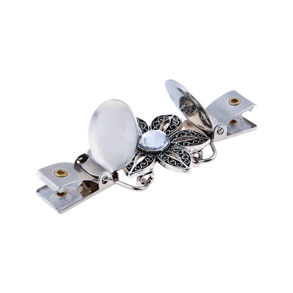 1 шт., винтажный женский свитер, кардиган с цветком, серебристые Стразы, зажим для воротника, застежка на утином пуху