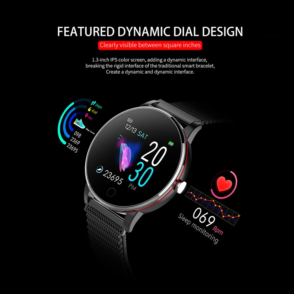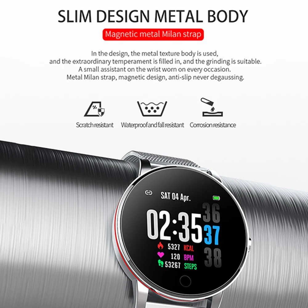 Браслет портативен по размеру и весу. Интеллектуальная фотография поможет вам записать важный момент. Тонкий ремешок из сплава, модный, прочный и антикоррозийный. IP67 глубокий водонепроницаемый уровень, поддержка плавания. Многофункциональность, такая как подсчет шагов и мониторинг здоровья, помогает вам жить лучше и ругально.