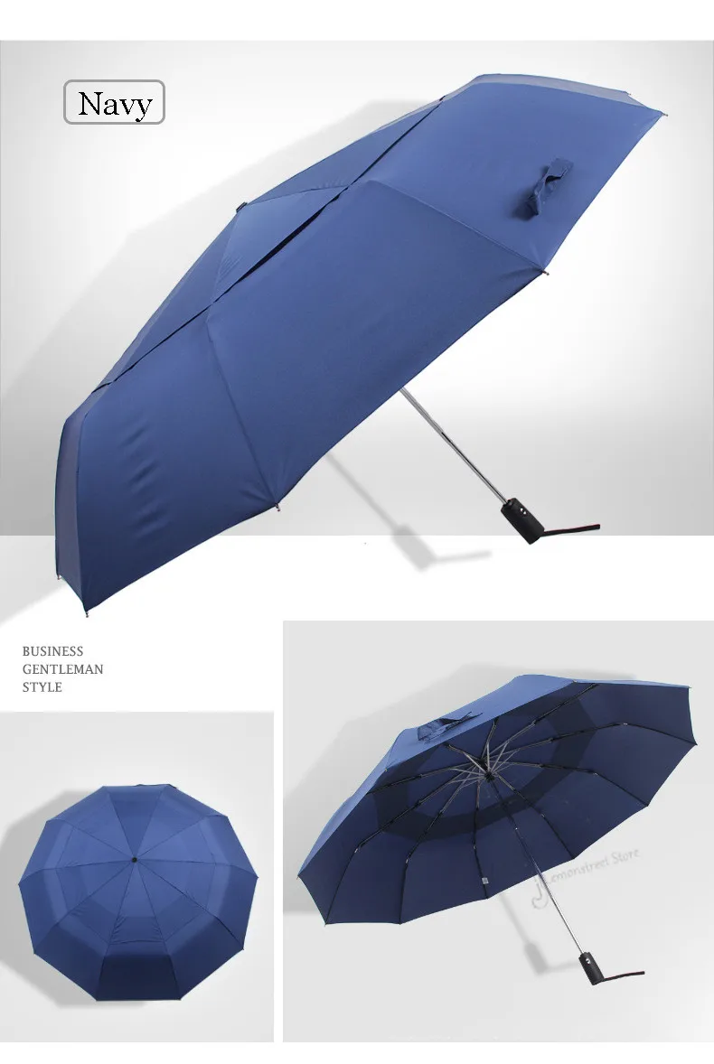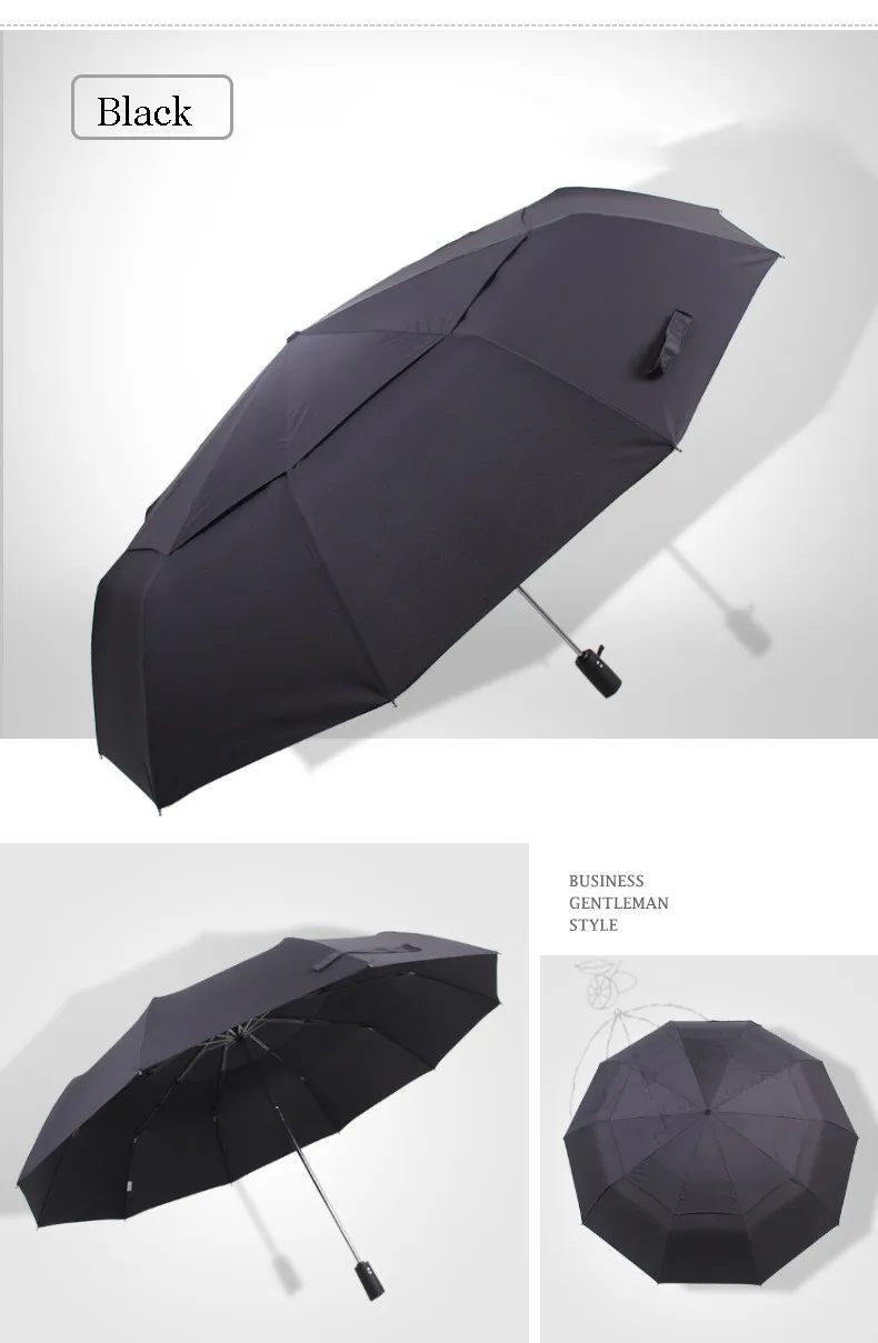 Автоматическое открытие и закрытие: надежный кнопочный механизм открывания и закрытия работает быстро, что позволяет открыть этот автоматический зонт в считанные секунды под внезапным дождем, отлично подходит для быстрого входа в автомобиль, здание, или палатка.