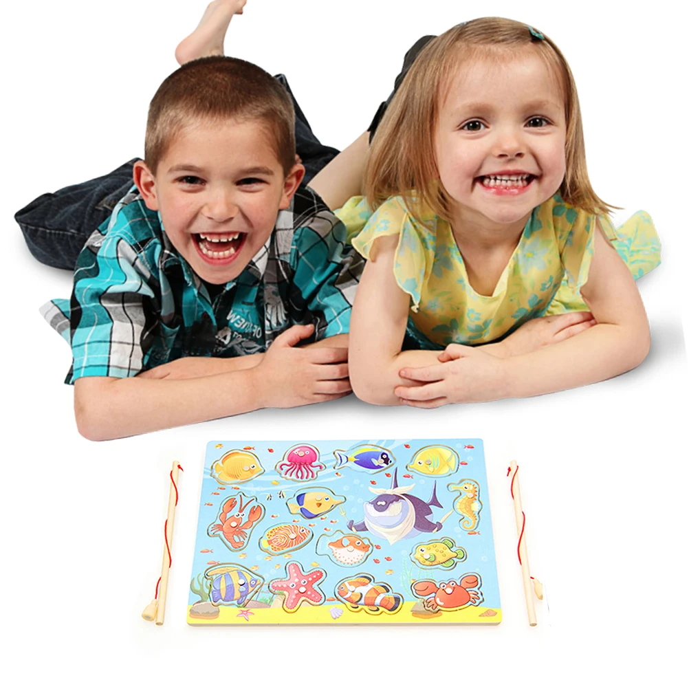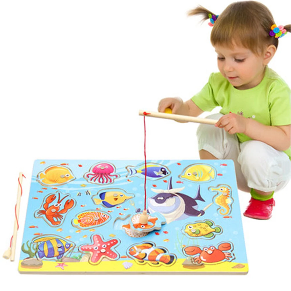 1 Набор Магнитных деревянных пазлов рыболовные игрушки