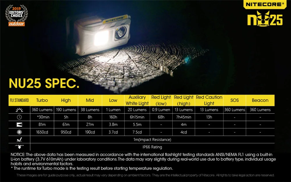 Максимальный выход 360 люменов Максимальное расстояние луча 81 м Максимальная интенсивность луча 1650 cd Максимальное время работы 160 h 0 m/6,66 d Светодиодный CREE XP-G2 S3 светодиодный Отражатель OP Батарея Перезаряжаемые литий-ионный аккумулятор Специальные режимы маяка местоположения, SOS Белый светильник, высокий CRI, вспомогательный красный светильник Длина 55,5 мм/2,18 дюйма Размер головки 55 мм/2,16 дюйма Вес 28g/0,98 oz Характеристики: перезаряжаемый, тройной выход Активный отдых на открытом воздухе/Кемпинг