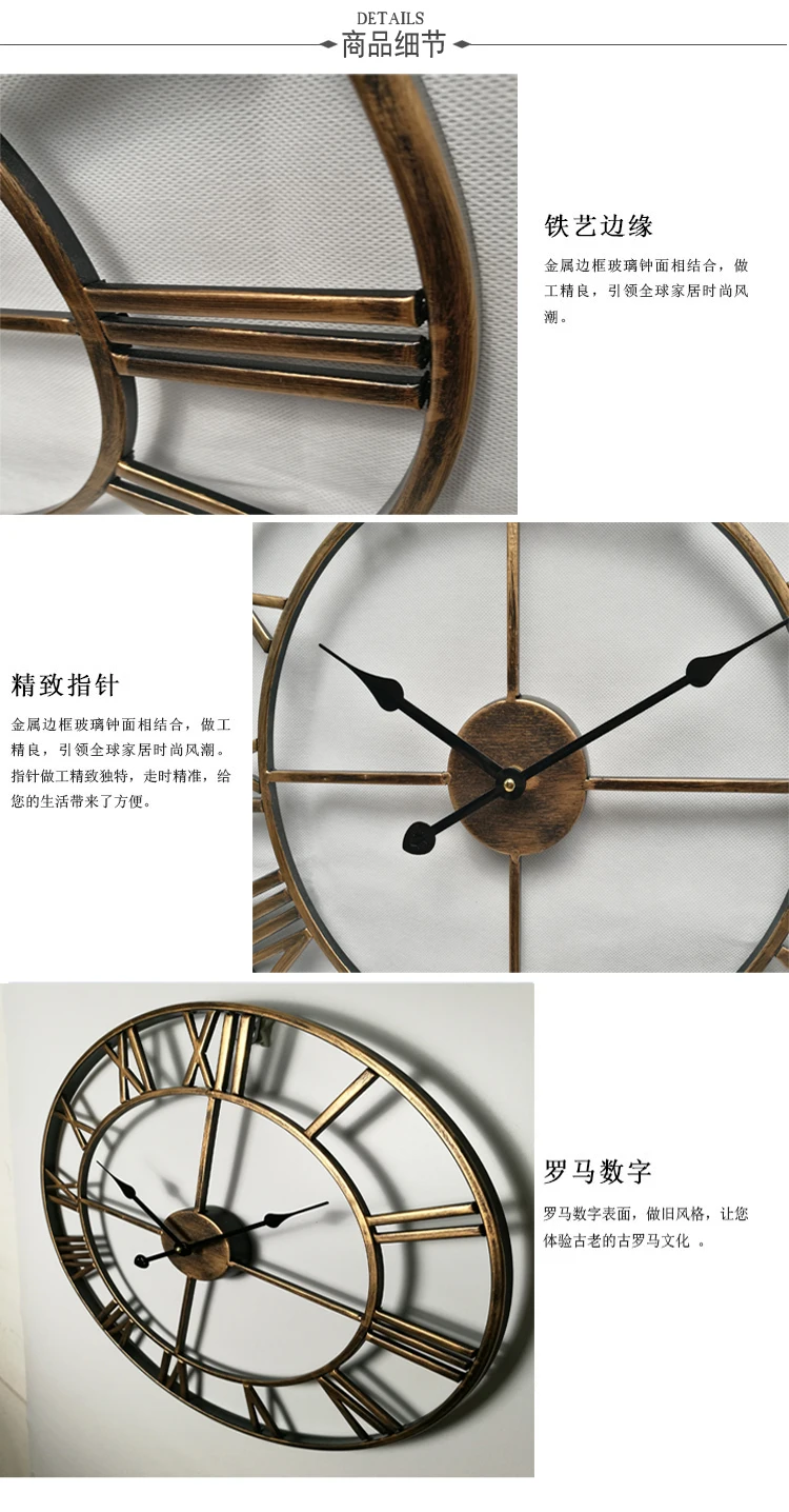 Антикварные большие настенные часы с римскими цифрами Описание: Наименование товара: железные антикварные большие настенные часы с римскими цифрами Цвет: яркие настенные часы Материал: металл Размер: диаметр 40 см, диаметр 47 см, диаметр 60 см Особенности: игла Применимые места: бары, кафе, гостиные, бисероплетение, кухня, открытый сад, рестораны и т. д. Посылка включает в себя: один комплект настенных часов (батарея не содержит)
