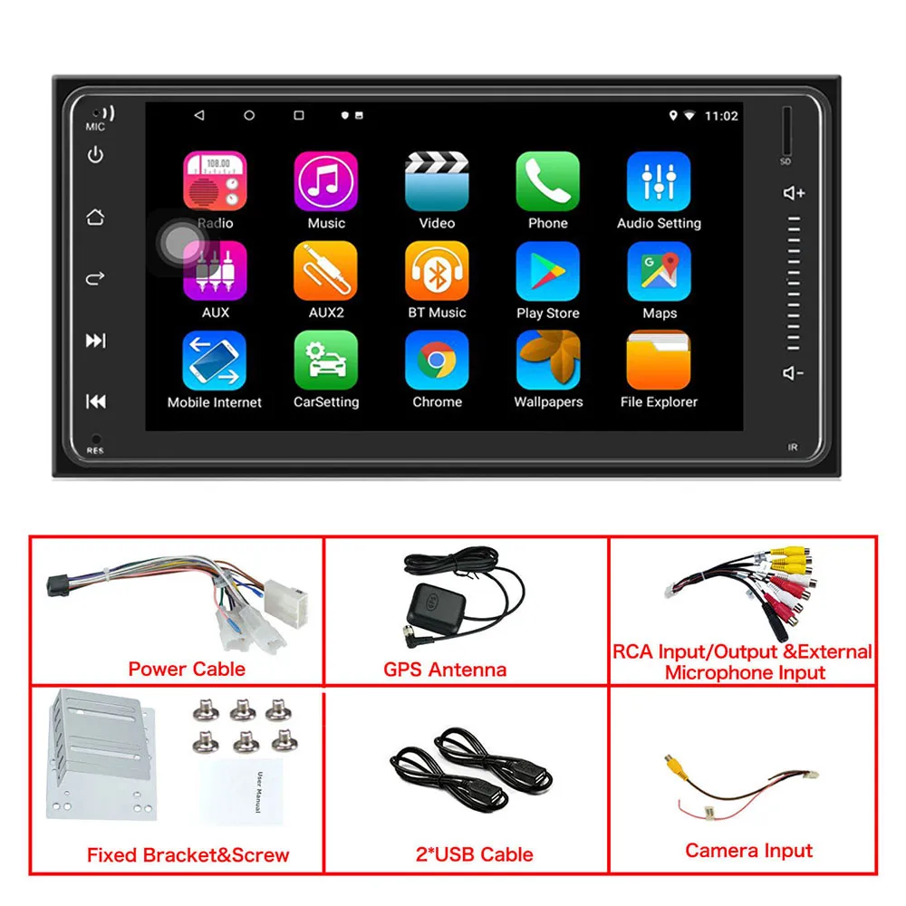 Системы и технические параметры Несколько языков: английский, немецкий, французский, итальянский, испанский, Magyar, Polski, португальский, свадьба, русский, турецкий... ОС: Android 8,1 Процессор: T3l 1,2 ГГц Cortex A7 4 ядра ОЗУ: DDR3 1 Гб RPM/флэш-память: 16 Гб Высокая Разрешение: 7 дюймов HD 1024*600 емкостный сенсорный экран Аудиочип: TDA7388 Двойное управление Mirror-link: Зеркальное отображение телефона на Android с помощью Wi-Fi или USB (двойное управление), подключение при первой возможности требуется через USB Зеркальное отображение iPhone через Wi-Fi (одностороннее управление: управление iPhone на Android, устройство Android не может управлять iPhone) GPS навигационное оборудование: Встроенная GPS-навигация, поддержка онлайн/оффлайн Nav Функция Dual Zone: одновременное прослушивание музыки, время работы GPS Радио: AM/FM тюнер, встроенный (по всему миру), хранилище автоматической памяти/предустановленное сканирование RDS радио: Да 3G/Wifi: Wi-Fi: Встроенный Wi-Fi Версия Bluetooth: Встроенный Bluetooth 4,0 с A2DP/громкой связью/телефонной книгой, возможность совершения телефонных звонков, а также возможность просмотра навигации. Прочие ожерелья и подвески: Поддержка внешний OBD2 Поддержка внешнего DAB + Поддержка Bluetooth система контроля давления в шинах Поддержка внешний микрофон 2 задних USB: один для стандартного USB входа; Один для DVR (видеорегистратор предназначен для автомобильного плеера android, пожалуйста, обратитесь к нашей модели DVR DVR5004 и DVR5014) Передняя SD входом Поддержка обратного входа камеры Несколько настроек эквалайзера Громкость, Фейдер, баланс, высокие частоты, управление басами Поддержка видео HD 1080P Макс. выходная мощность 4*45 Вт 2 Ch RCA выход 1 пара задних входов A/V 2CH Video Out Выход на сабвуфер Управление рулевым колесом (Внимание: Если у вашего автомобиля есть система Canbus, вам понадобится декодер Canbus для работы на руле.) Мультимедийный плеер, совместимый со всеми форматами Вспомогательное оборудование: 1 х Автомобильный Android плеер 1 x Антенна GPS 1 x электроинструмент для Toyota 1 x Руководство пользователя 2 x USB-кабеля 1 x вход камеры заднего вида 1 x RCA кабель
