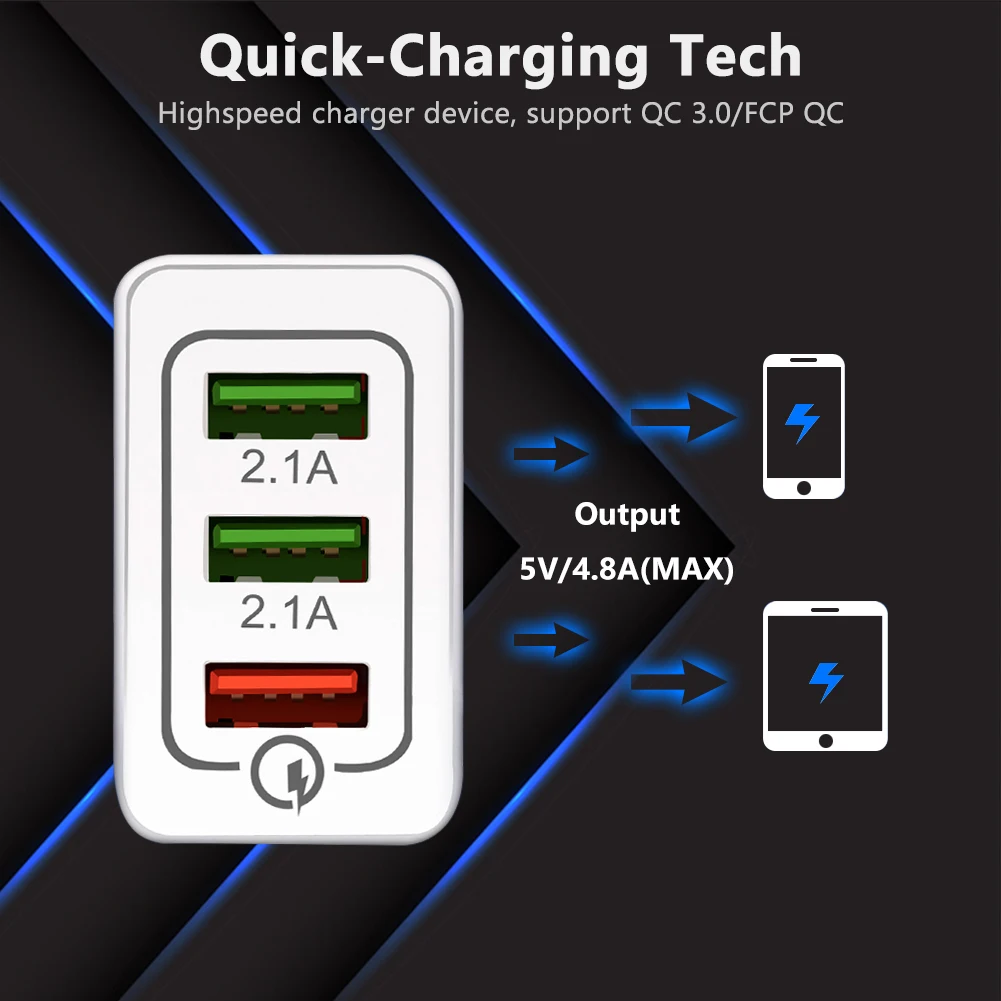 3 USB порта зарядное устройство Быстрая зарядка 3,0 быстрая, USB зарядное устройство адаптер питания, оптимизированный для зарядки телефонов, планшетов и любых других usb-устройств на максимальной скорости.