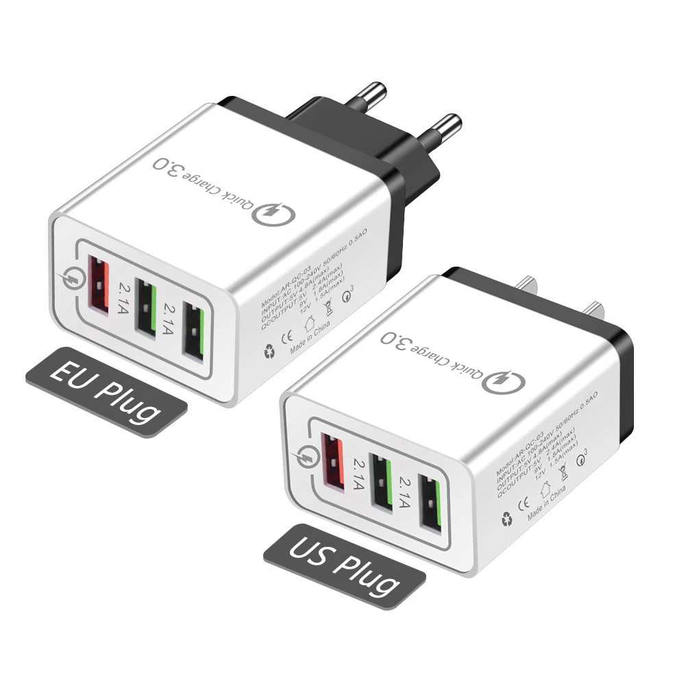 АБС-пластик, 3 usb порта, быстрая зарядка 3,0, зарядное устройство для телефона, штепсельная вилка EU/US для Iphone Xs, huawei Honor Iphone 8 Plus, Xiaomi Redmi Note 7