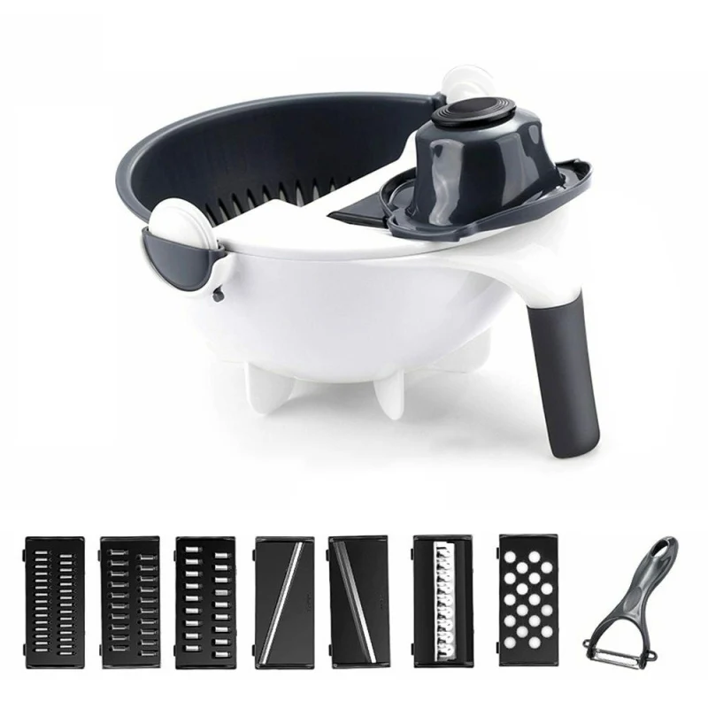 Кухонная помощь: резка и чистка, простая и быстрая, вращающаяся пряжка, Автоматический угол вращения, Асфальтовая корзина всегда стабильна, легко моется за овощи и сливается.