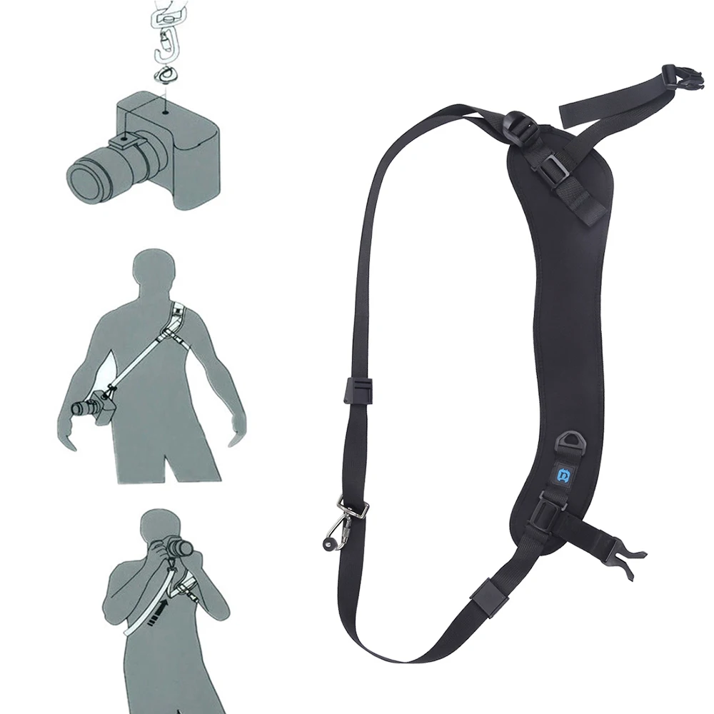 Этот мягкий ремешок для камеры предназначен для ношения через правостороннее тело пользователя, Драпированное от левого плеча до правого бедра. Благодаря влагоотводящей наплечной подушечке этот ремешок создан для обеспечения большинства фотографов удобным и универсальным решением для переноски одной камеры. Это очень удобно для вас, чтобы носить камеру, подходит для SLR/DSLR камеры s.