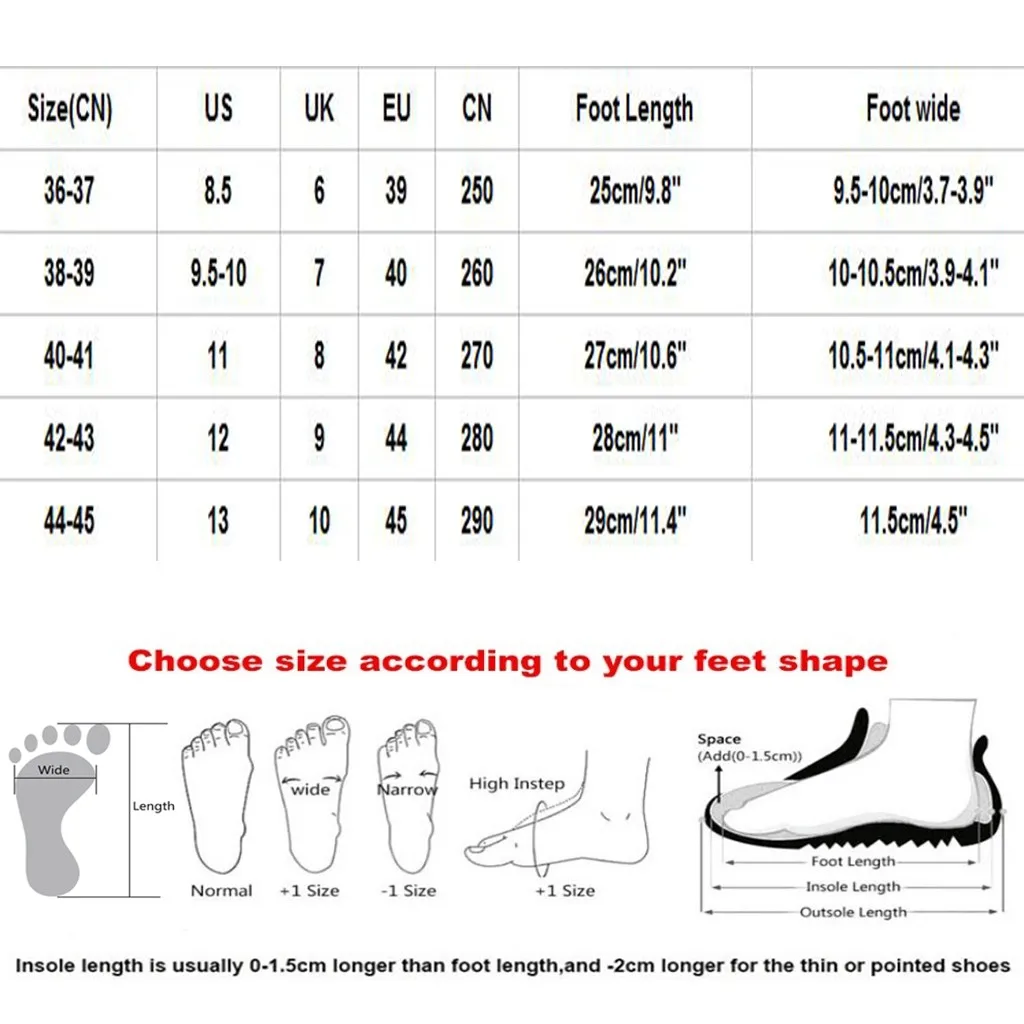 Полезные советы:Разные Стили обуви, пожалуйста, выберите размер в соответствии с вашим типом стопы