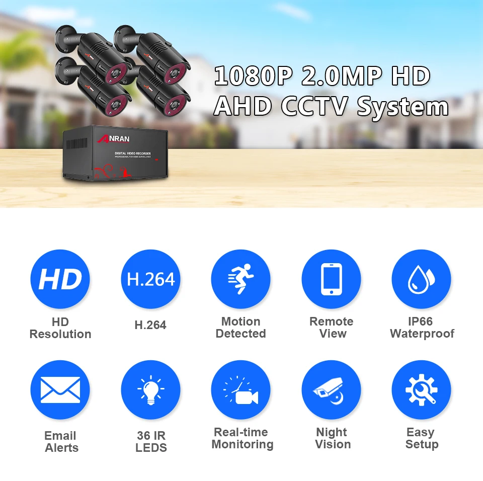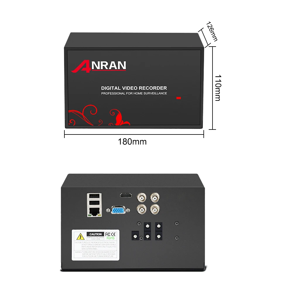 · 4 канала 1080P DVR · Встроенный адаптер питания для камеры DVR. (Для камеры не требуется дополнительных адаптеров питания) · Поддержка обнаружения движения · Поддержка Android/IOS/Pad/ПК с дистанционным просмотром · Получайте мгновенные оповещения по электронной почте при обнаружении движения · Поддержка просмотра видео, записи, воспроизведения, резервного копирования USB · Получайте мгновенные оповещения по электронной почте при обнаружении движения · Сжатие видео: H.265 · Видео система: NTSC / PAL · Операционная система: на базе Linux · Видео Вход: 4-канальный Вход · Видеовыход: VGA/HDMI Разрешение дисплея: NTSC: 1080P/ PAL: 1080P · Режим записи: непрерывный, таймер, обнаружение движения · Функция сети: Поддержка просмотра в реальном времени, с ПК и мобильный телефон · Сетевой интерфейс: RJ45 Сетевой протокол: TCP/IP, PPPoE, DHCP и SMTP · Интерфейс жесткого диска: поддержка до 4 ТБ SATA HDD (не входит в комплект)