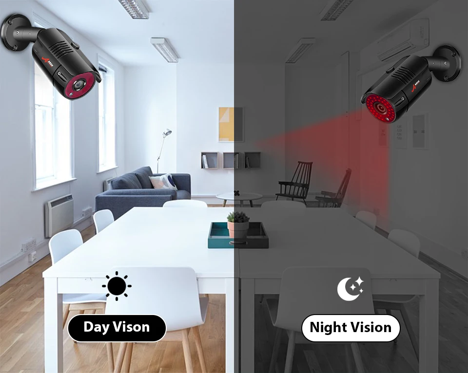 Камера, оснащенная 36 ИК-светодиодами, обеспечивает четкое ночное видение на 120 футов (40 метров) с равномерной яркостью, низким энергопотреблением и длительным сроком службы.