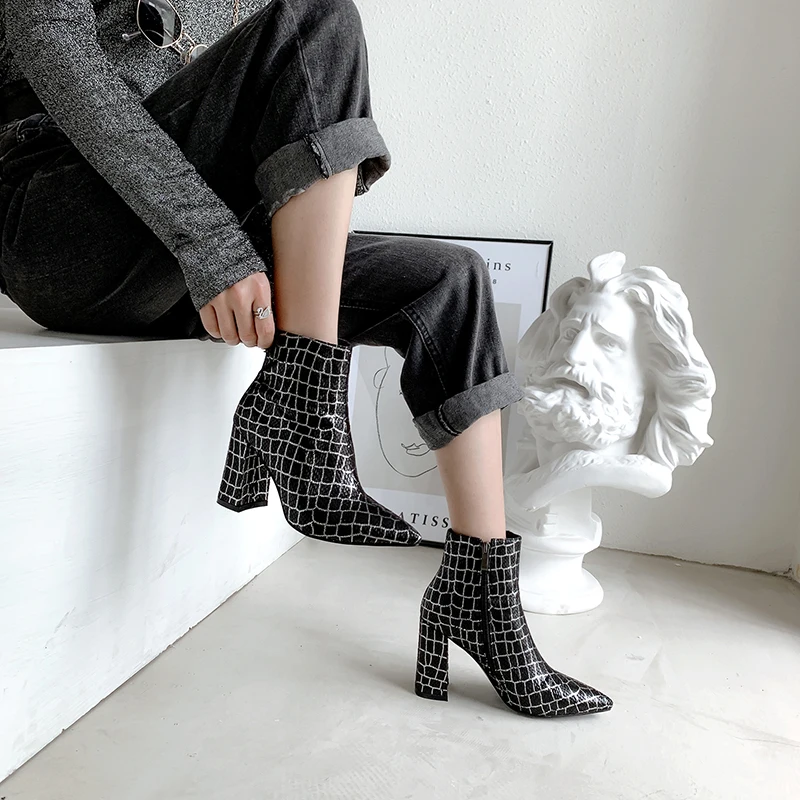 Женские ботильоны; Сезон осень; Обувь со змеиным тиснением и острым носком