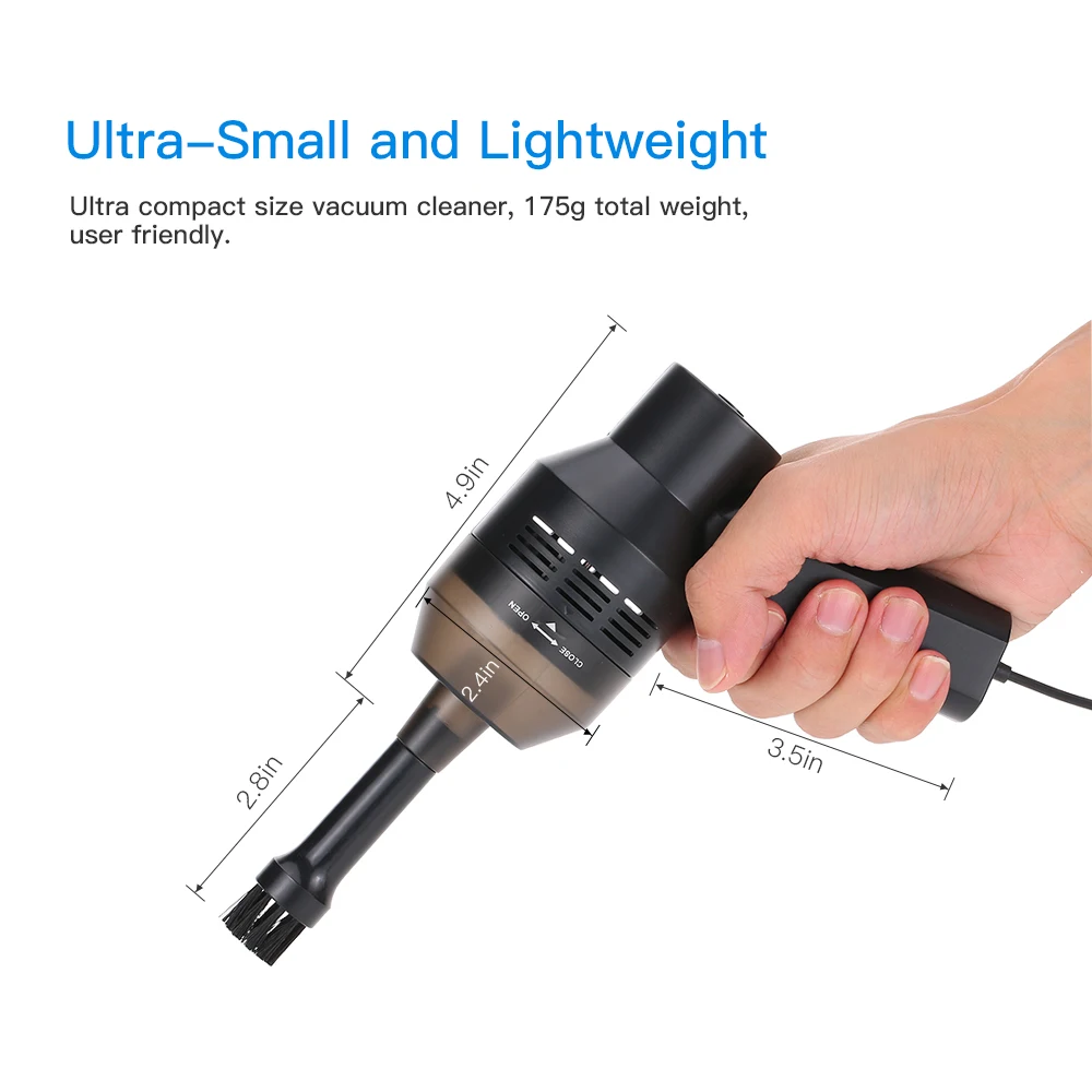 Очистка мертвой зоны, Ультра маленький портативный размер, оснащен дополнительной длинной насадкой для щетки для волос для подметания и сбора крошечной, плавающей пыли, плоской насадкой для сильного поглощения маленького мусора из углов и прорезей.