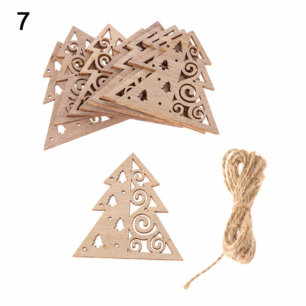 10 шт., Деревянные Подвески для рождественской елки, украшения из дерева Санта-Клауса, украшения для поделок, вечерние товары для домашнего декора, детские игрушки