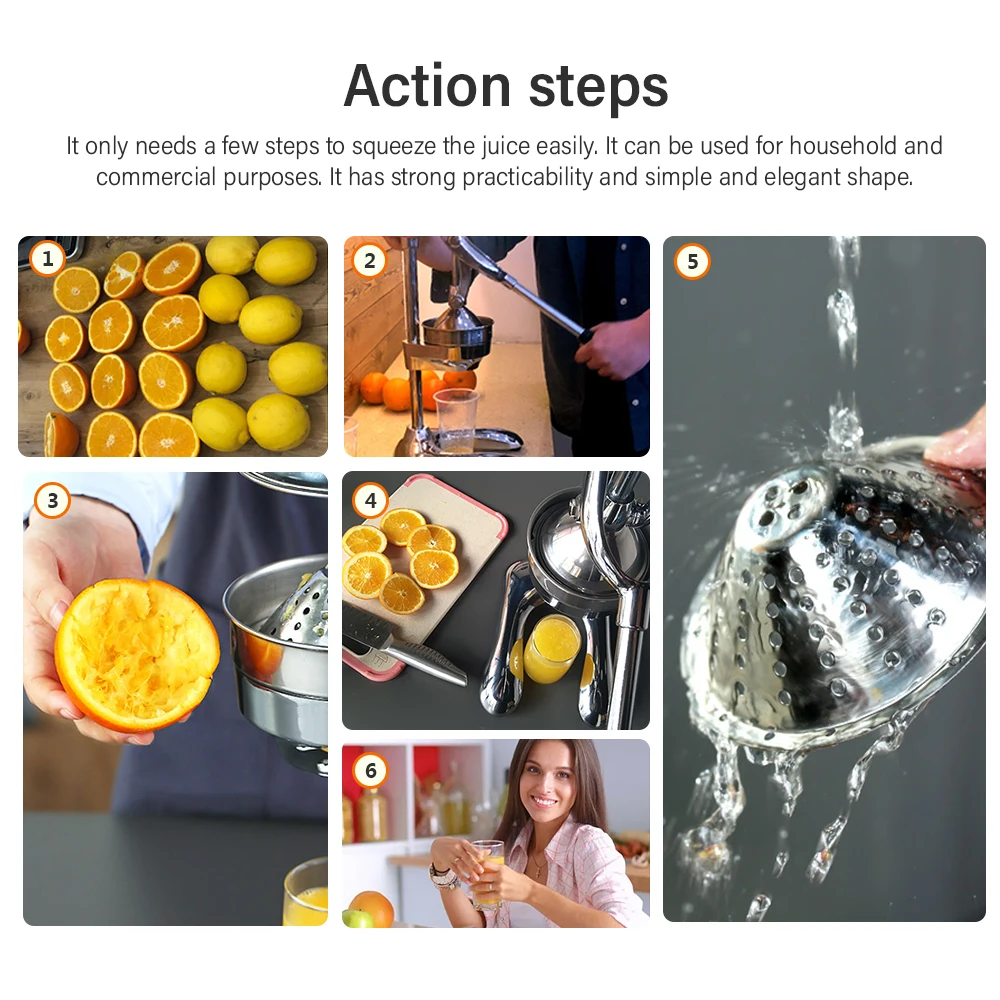 Разработан специально для сдавливания мягких фруктов с кожей, такой как Оранж, гранат, грейпфрут.