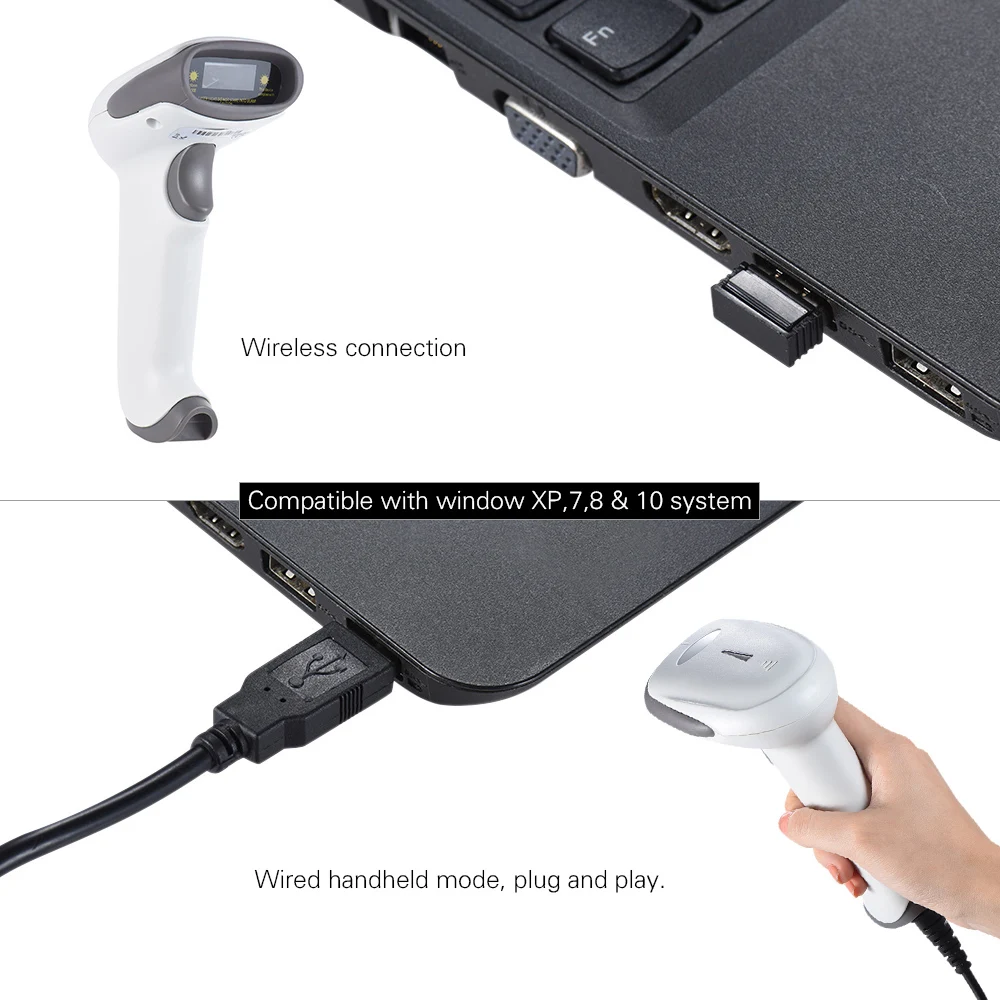 Беспроводной Bluetooth или USB 2,0 проводное подключение ручной сканер штрих-кода, мощная емкость декодирования.