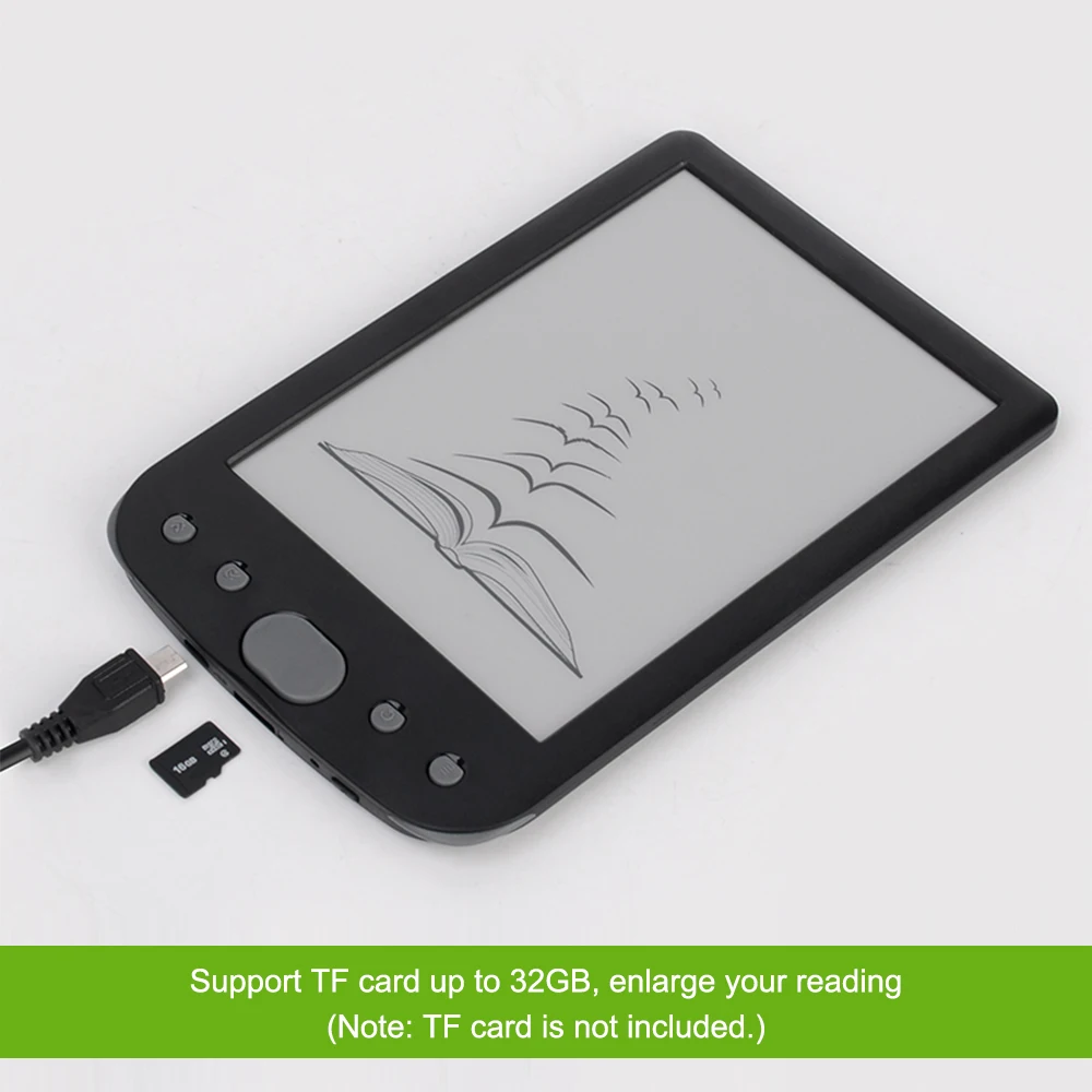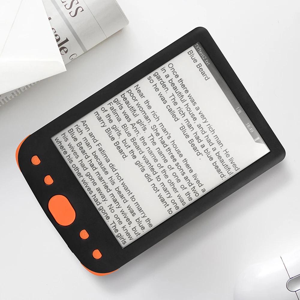 6 дюймов E-ink Экран: 800*600 разрешение без каблука на основе технологии e-ink Экран читает как настоящие бумага без бликов, четкие слова, легко читать. Вы можете читать на солнце светильник, не отражающий светильник.