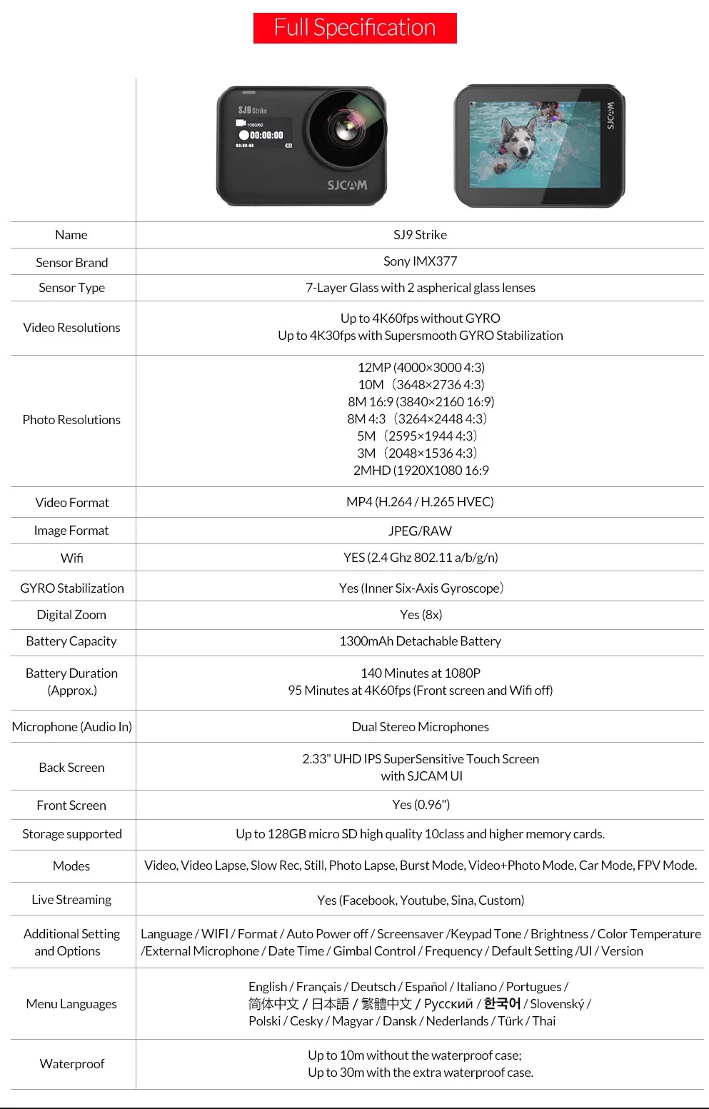 Карта памяти класса 10 или U1 и все карты памяти Samsung несовместимы с камерами SJ9 Strike, SJ8 Pro и SJ8 Plus, рекомендуется использовать оригинальную карту памяти Sandisk U3 level (скорость записи 8K UHD).