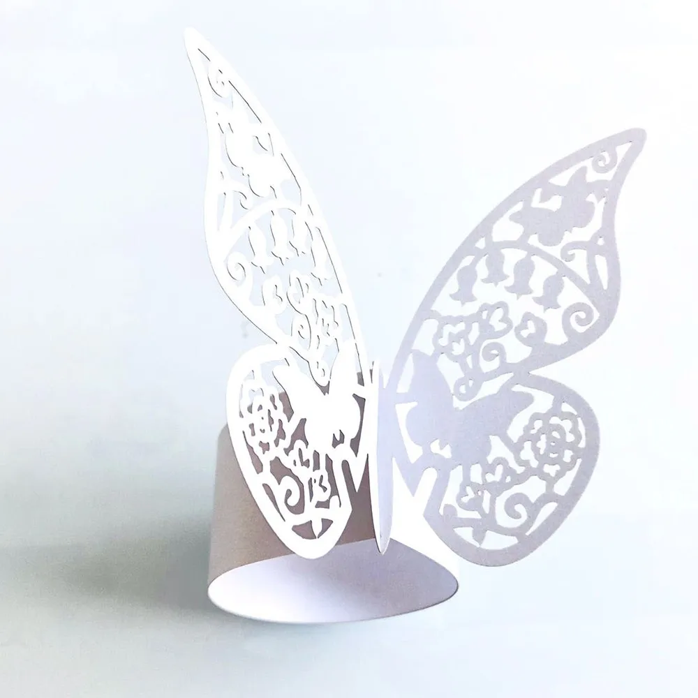 50pcs Hollow Butterfly Pearl Paper Napkin Rings Towel Buckle Serviette Holder Wedding Banquet Dinner Table Decoration