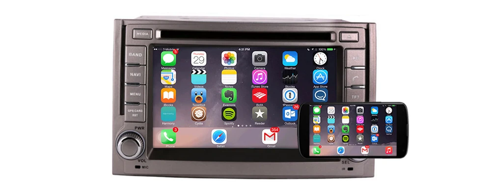 Поддержка проводной зеркальной связи с android телефоном и iPhone