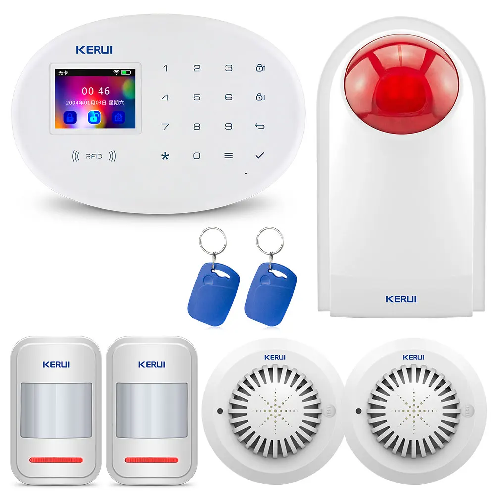 KERUI Wi-Fi GSM домашняя система охранной сигнализации с 2,4 дюймовым TFT сенсорной панелью управление приложением RFID карта беспроводная умная домашняя охранная сигнализация