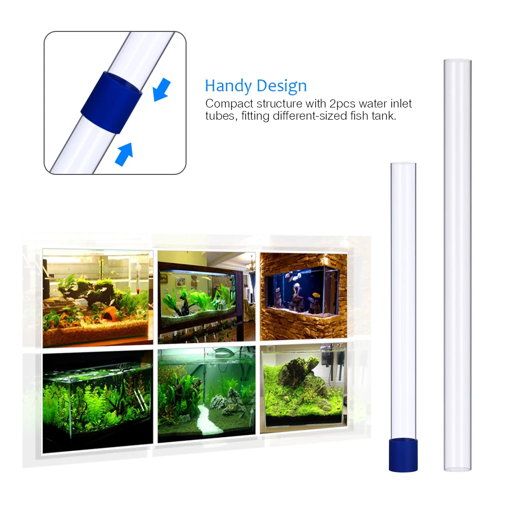 Удобный дизайн: компактная структура с 2 шт воды впускные трубы, фитинг различных размеров аквариума.
