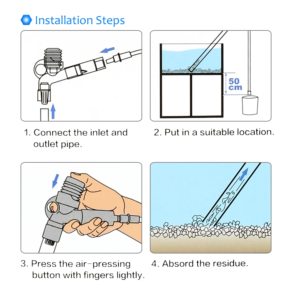 Этот очиститель аквариума прост и прост в использовании. Он может эффективно и быстро завершить ежедневную работу по замене воды и очистке аквариума, что сэкономит вам много времени на очистку резервуара. Это так практично и экономит время.