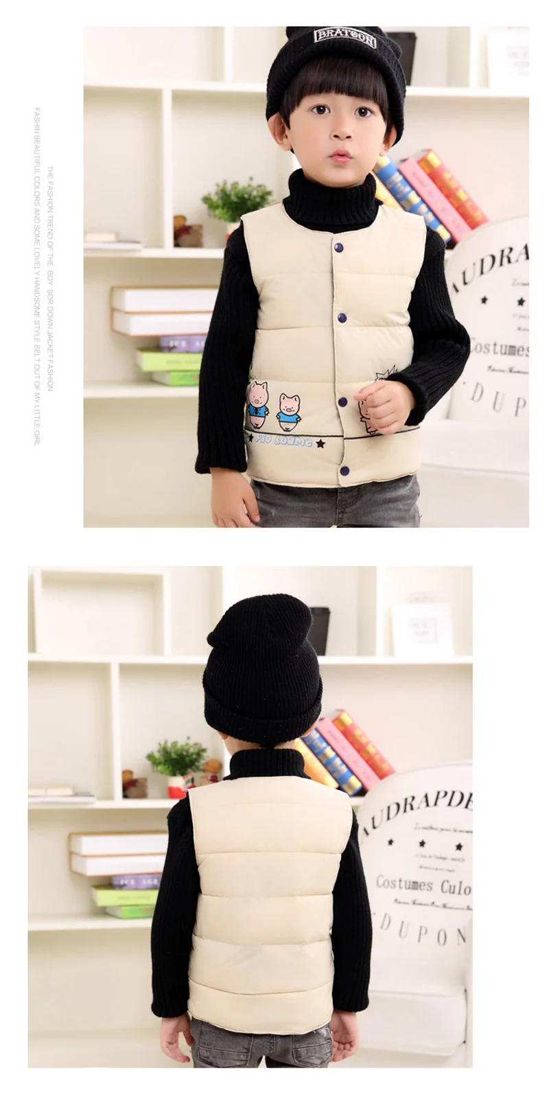 Осенне-зимние теплые детские жилеты для мальчиков, верхняя одежда с изображением поросенка и жирафа куртки без рукавов с капюшоном пальто для маленьких мальчиков