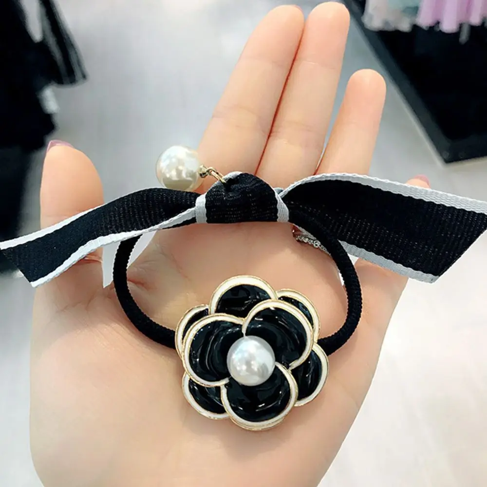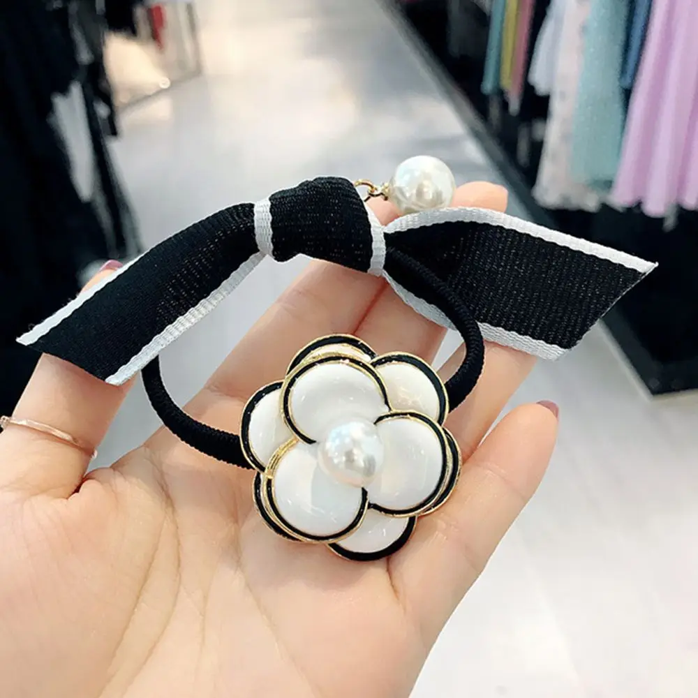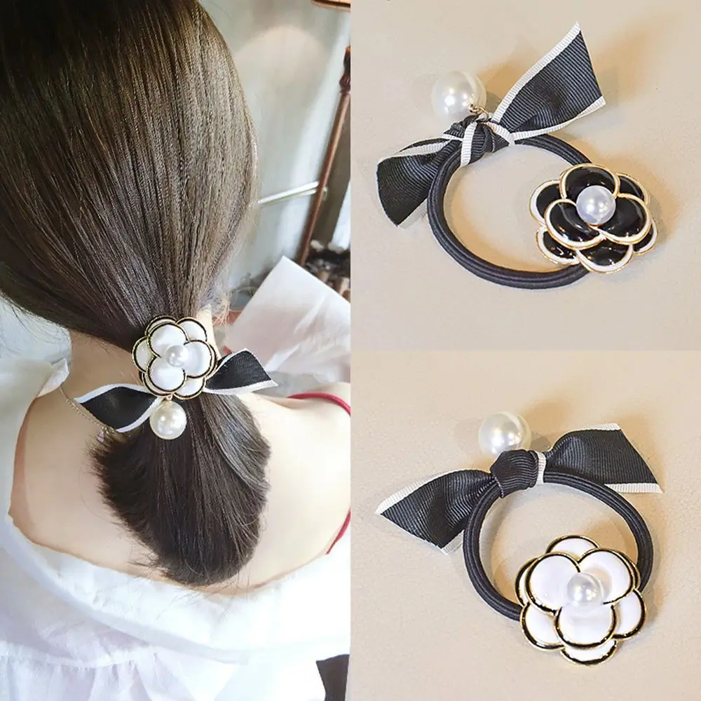 Корейская девушка простой Камелия цветы эластичные резинки для волос галстук-бабочка имитация жемчуга женский модный конский Хвостик Держатель Аксессуары для волос