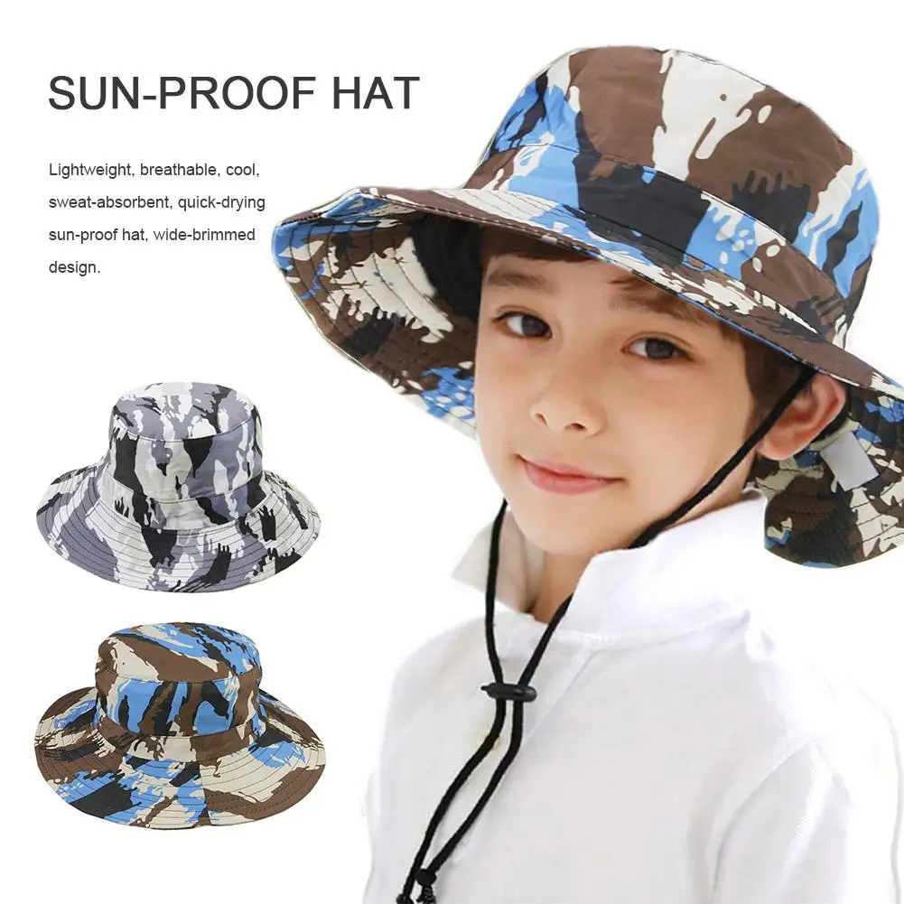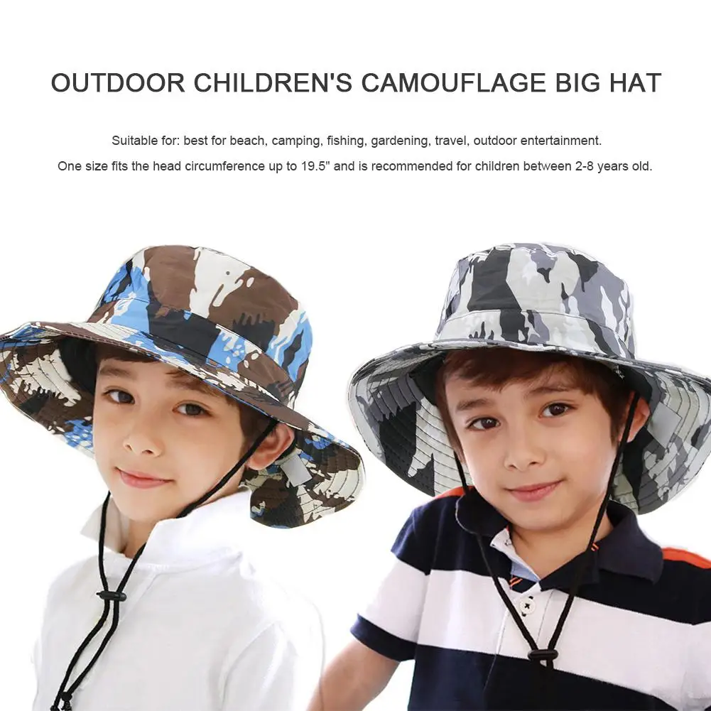 Уличная детская пляжная Спортивная Кепка, камуфляжная большая шляпа UPF50, защита от УФ лучей, защита от солнца, шляпы с большими полями для мальчиков и девочек