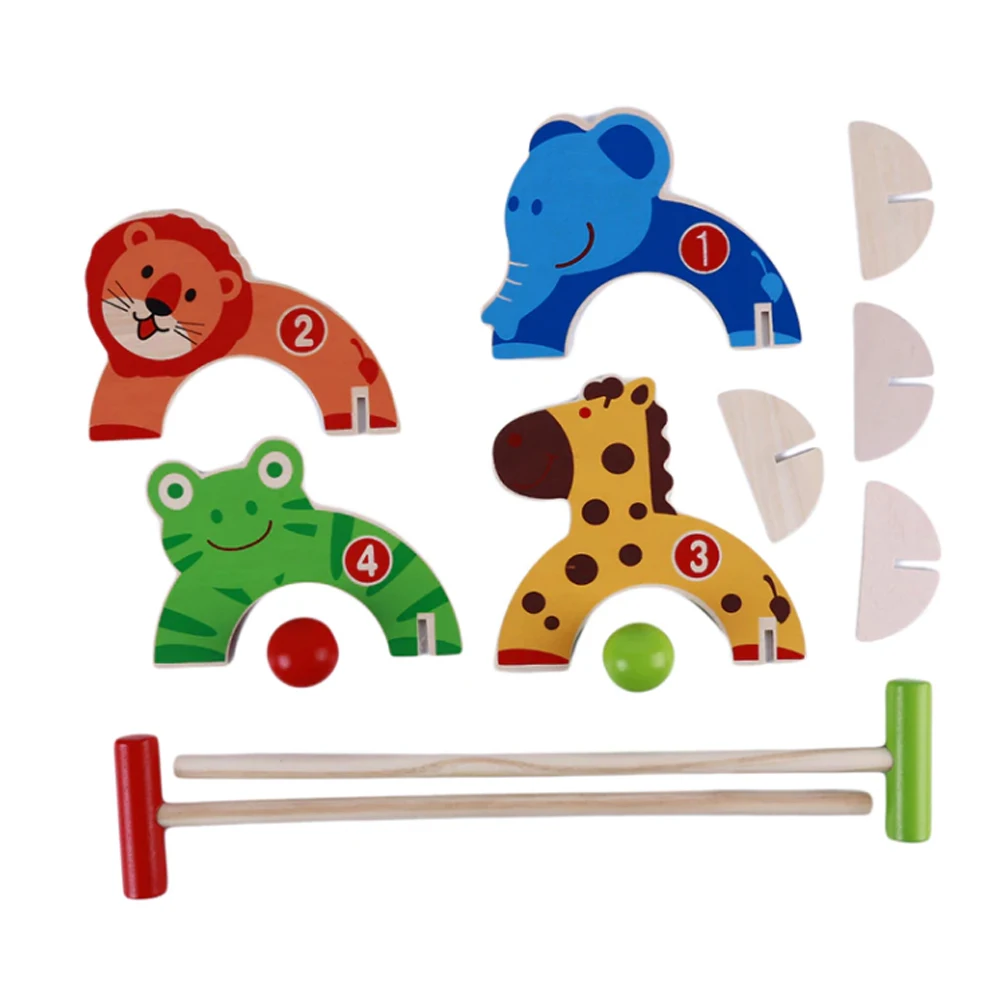 1 Набор детских деревянных мультяшных крокетов для игры в гольф