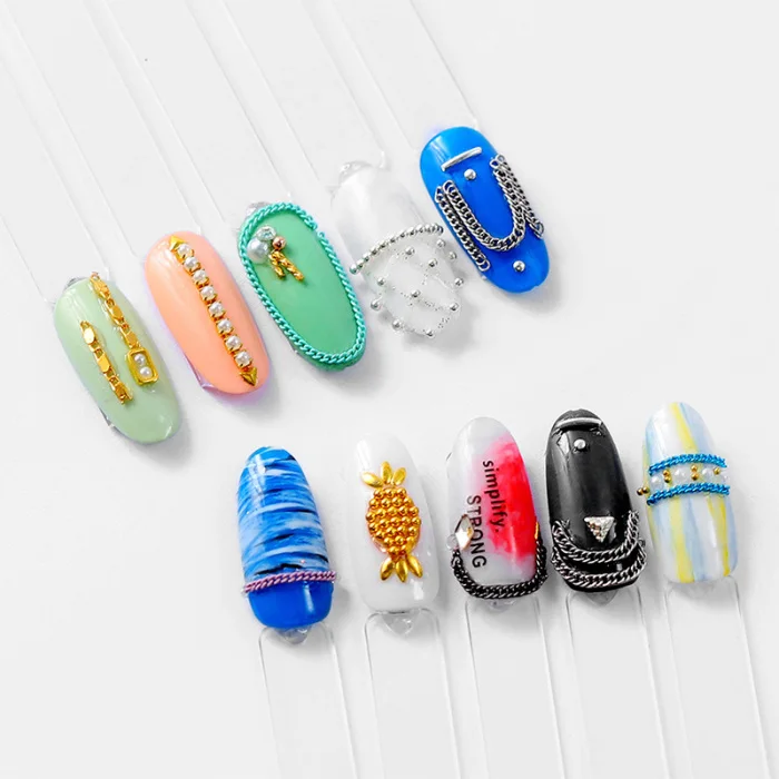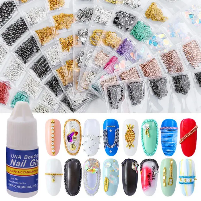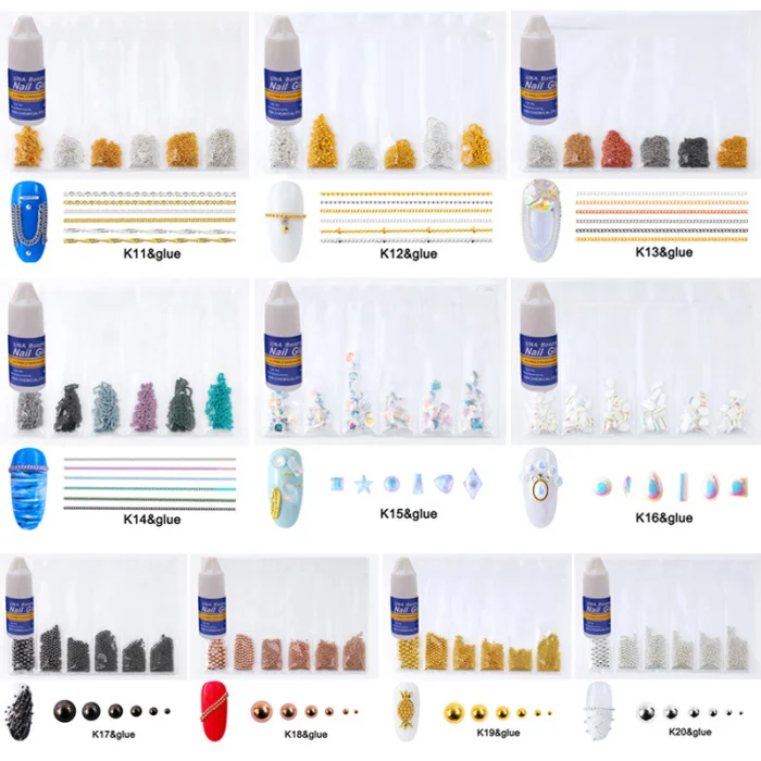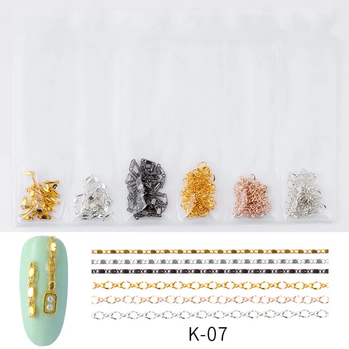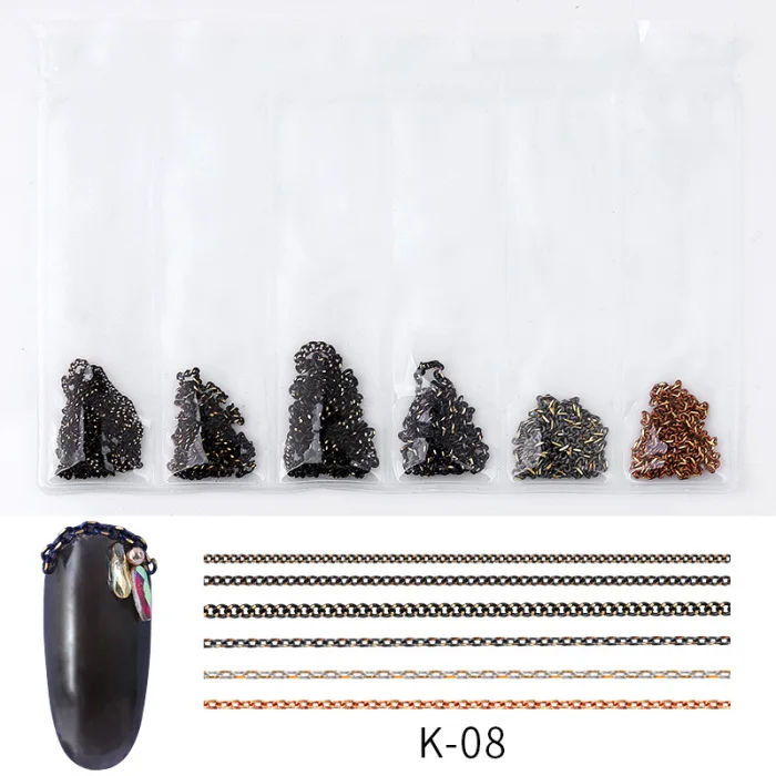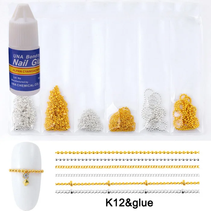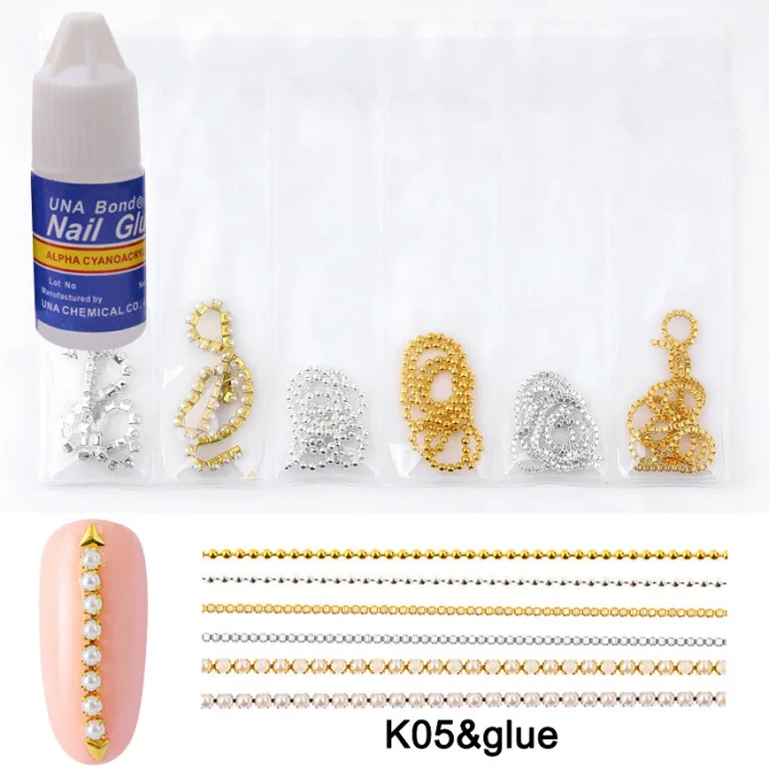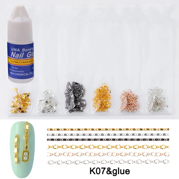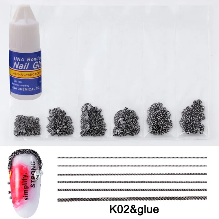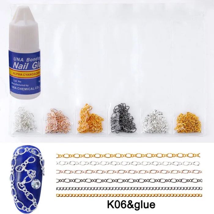 6 шт./кор. 3D "сделай сам" в сдержанном стиле металлизированные для дизайна ногтей цепи с 3 г Клей для ногтей LDO99