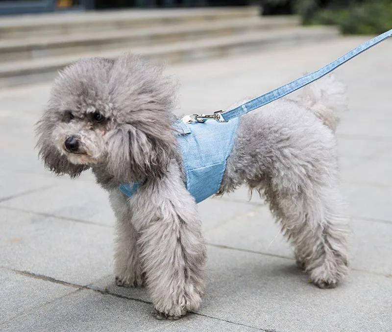 Комплект для милой собаки с ремнем и поводком, джинсовый жилет для маленьких собак, щенков, принцессы, обхватывающие грудь ремни, жилет для чихуахуа, йоркширского терьера 10E