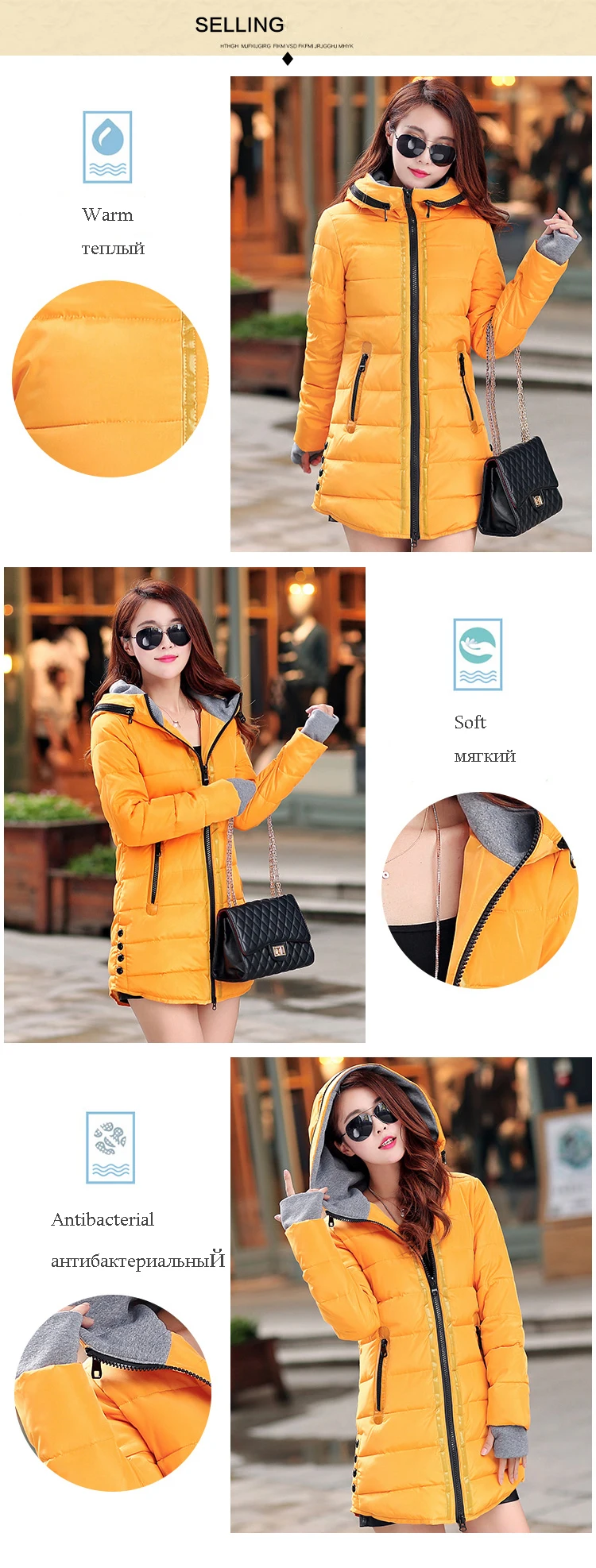 Женское зимнее теплое пальто с капюшоном размера плюс, куртка с хлопковой подкладкой ярких цветов, Женская длинная парка, Женская ватная куртка, 2019