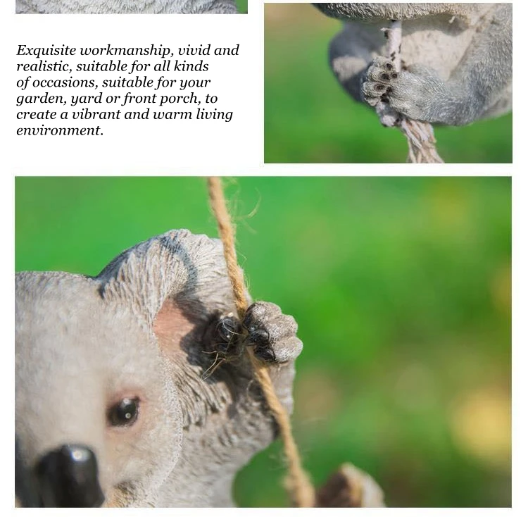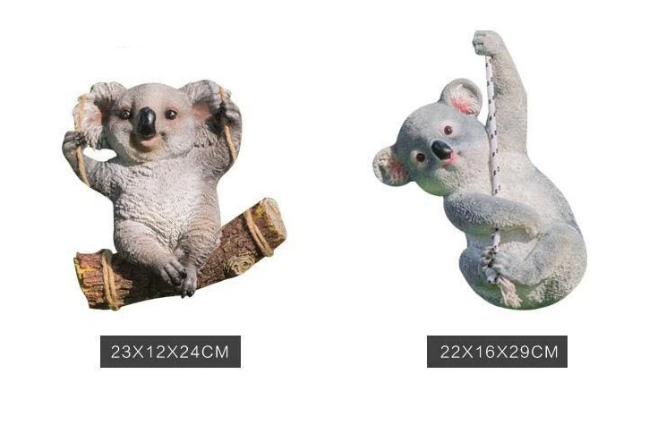 1. Название: украшения животных из смолы 2. Материал: Экологически чистая смола 3. Размер: маленькая коала: длина 24 * ширина 12 * высота 24 см; Большая коала: длина 22 * ширина 16 * высота 29 см; Панда: длина 24 * ширина 15 * высота 25 см 4. Применимо: внутренний двор, гостиная, балкон, сад, вилла, украшение сада 5. Упаковка включает в себя: 1 х украшения животных из смолы 6. Длина веревки составляет около 1 м. 7. Изделие изготовлено вручную, искусственно окрашено, с небольшими изъянами и хроматическими аберрациями, но не влияет на общую эстетику.