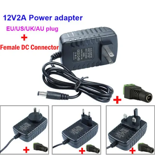 2A AC DC 12V адаптер питания зарядное устройство Трансформатор для 3528/5050 LED полоса Великобритания ЕС, США, Великобритания, Австралия (опционально) Тип: 12V 2A Вход: 100-240 В переменного тока, 50/60 Гц Выход: 12 В 2 А Длина кабеля: около 110 см Размеры: 5,5 мм * 2,1 мм Состояние: абсолютно новый 100% Посылка: Адаптер питания постоянного тока 12 В 2 А и разъем постоянного тока 1 шт.